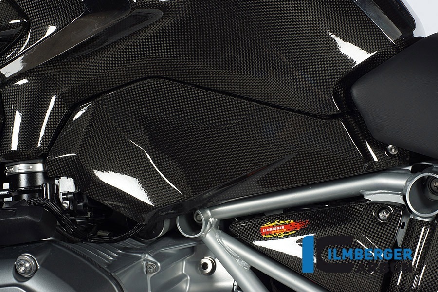 Die Ilmberger Carbon untere Tankabdeckung links bzw. Ansaugrohrabdeckung links aus hochwertigem Carbon ist passend für BMW R1200GS LC (2013–2016) und besitzt eine ABE gemäß Verwendungsliste. Diese Carbonabdeckung ist größer als das originale Bauteil und bietet dadurch besseren Schutz. Gleichzeitig werden Benzinleitungen und Kabel verdeckt, was für ein aufgeräumtes Erscheinungsbild des Motorrads sorgt.
