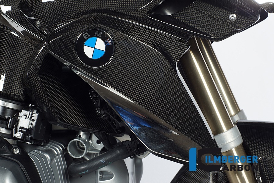 Die Ilmberger Carbon Wasserkühlerabdeckung rechts besteht vollständig aus hochwertigem Prepreg-Carbon und ersetzt das originale Serienbauteil unter Nutzung der bestehenden Befestigungspunkte. Das Bauteil überzeugt durch sein extrem geringes Gewicht von nur etwa 100 Gramm und bietet damit eine Gewichtsersparnis von rund 70 % gegenüber dem Originalteil. Gleichzeitig gewährleistet die erhöhte Steifigkeit eine verbesserte Stabilität und Langlebigkeit. Gefertigt im modernen Autoklaven-Verfahren und anschließend mit einer speziellen Klarbeschichtung versehen, bietet die Oberfläche überragenden Schutz gegen Witterungseinflüsse, hohe Kratzfestigkeit und eine besonders brillante Tiefenwirkung der Carbonstruktur. Diese Abdeckung ist perfekt auf das Design der BMW R1200GS LC abgestimmt und trägt zusätzlich den Plakettenträger auf der rechten Seite.