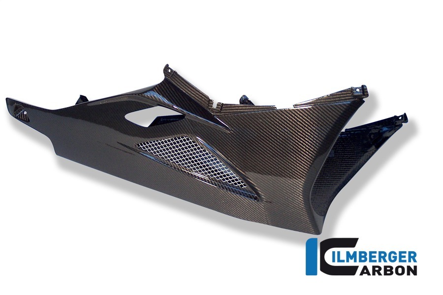 Gefertigt aus hochwertigem Prepreg-Carbonmaterial im Autoklaven-Verfahren bietet dieses Verkleidungsunterteil eine enorme Gewichtsersparnis von bis zu 70 % im Vergleich zum Originalteil und gleichzeitig eine deutliche Steigerung der Steifigkeit. Die spezielle Kunststoffbeschichtung schützt die Oberfläche wesentlich besser als herkömmlicher Klarlack – sie ist widerstandsfähig gegen Kratzer, Umwelteinflüsse und sorgt für eine brillante Tiefenwirkung der Carbonstruktur.