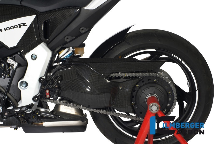 Die Ilmberger Carbon Schwingenabdeckung mit integriertem Kettenschutz wurde speziell passend für die Honda CB1000R entwickelt und überzeugt durch präzise Passform, geringes Gewicht und ein hochwertiges Oberflächenfinish. Sie schützt die Schwinge Ihres Motorrads effektiv vor Steinschlägen und Schmutz, während sie gleichzeitig das sportliche Design des Bikes deutlich aufwertet.