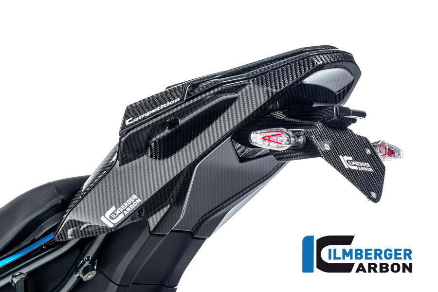 Dieses Bauteil ersetzt das originale Kunststoffteil und nutzt die originalen Befestigungspunkte des Motorrads. Das von Ilmberger eigens entwickelte Prepreg-Carbongewebe wird in aufwendiger Handarbeit laminiert und im Autoklav ausgehärtet. So entsteht ein Bauteil mit dreifach höherer Steifigkeit im Vergleich zu Stahl bei gleichzeitig deutlich geringerem Gewicht.