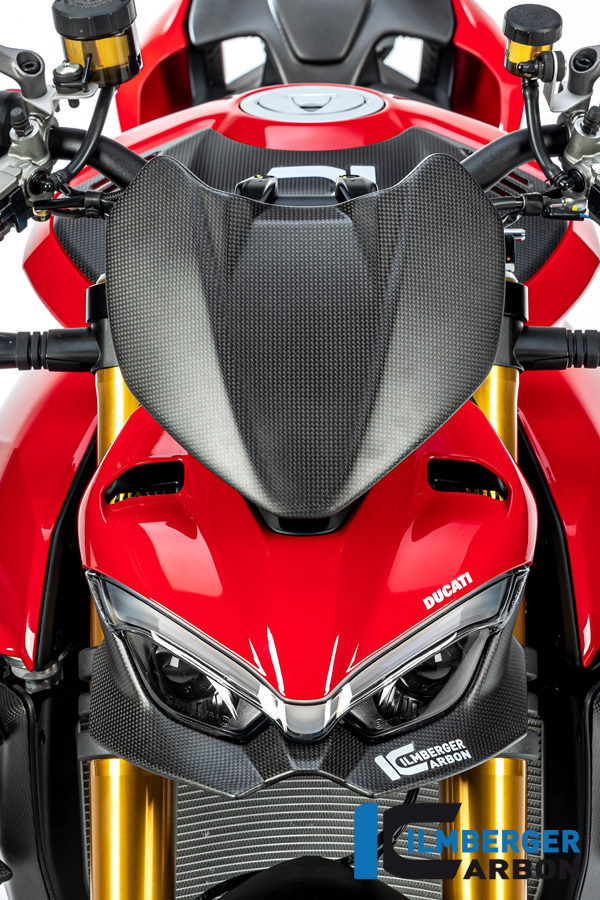 Gefertigt im Autoklaven aus Prepreg-Material nach modernsten Herstellungsstandards überzeugt das Verkleidungsoberteil durch rund 70 % Gewichtsersparnis gegenüber dem Original. Die matte Oberfläche unterstreicht den sportlich-edlen Charakter des Motorrads.