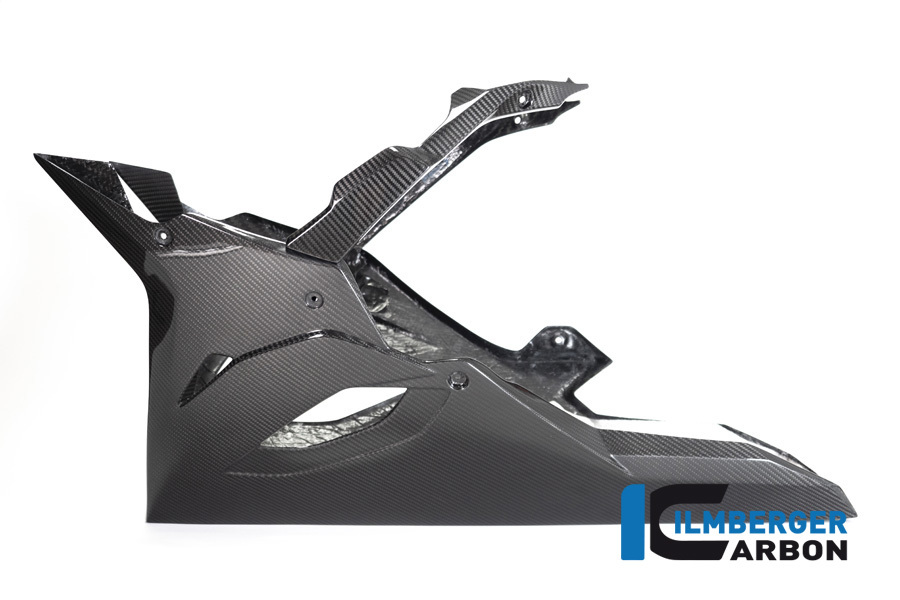 Das Ilmberger Carbon Verkleidungsunterteil wurde speziell für die Racing Komplettauspuffanlage entwickelt und ist passend für BMW S1000RR Straße ab Baujahr 2019. Es ersetzt das originale Bauteil unter Beibehaltung der serienmäßigen Befestigungspunkte und sorgt für ein professionelles Tuning-Ergebnis. Durch die Fertigung aus hochwertigem Prepreg-Carbon im Autoklaven wird eine deutliche Gewichtsersparnis von etwa 70 % gegenüber dem Originalteil erreicht, bei gleichzeitig höherer Steifigkeit und Stabilität.