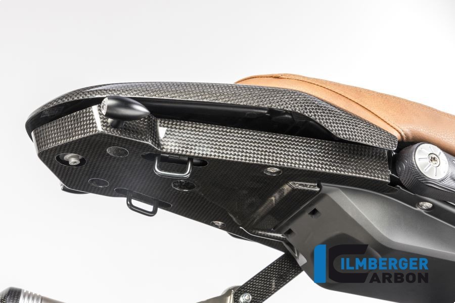 Die Ilmberger Carbon Rahmenheckverkleidung passend für BMW R nineT zeichnet sich durch erstklassige Verarbeitung und maximale Performance aus. Sie ersetzt das originale Bauteil vollständig und nutzt dabei die serienmäßigen Befestigungspunkte. Der originale obere Kennzeichenhalter entfällt. Für eine saubere und harmonische Optik empfiehlt sich die Kombination mit dem optional erhältlichen Spritzschutz inklusive Kennzeichenhalter.