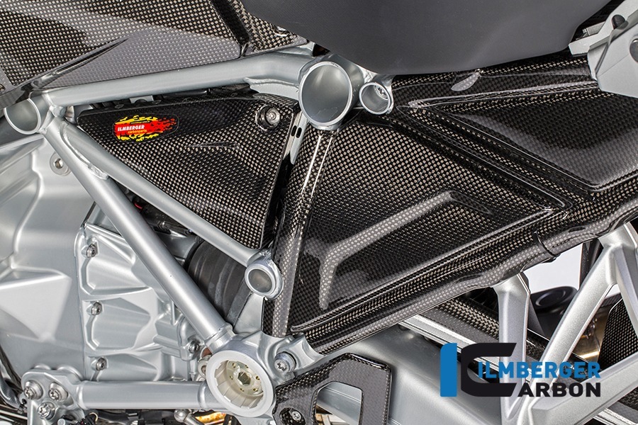 Das Ilmberger Carbon Rahmendreieckcover links aus hochwertigem Carbon ist speziell passend für BMW R1200GS (LC), R1200GS (LC) Adventure, R1200R (LC) und R1200RS (LC) ab Baujahr 2015 entwickelt. Es ersetzt das originale Bauteil und nutzt dabei die vorhandenen Befestigungspunkte. Das Carbon-Bauteil sorgt für eine erhebliche Gewichtsersparnis von rund 70 % im Vergleich zum Originalteil und zeichnet sich zugleich durch hohe Steifigkeit und exzellente Verarbeitungsqualität aus.