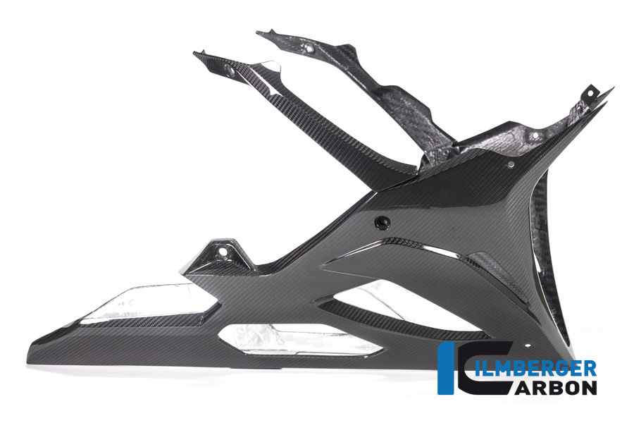 Das Ilmberger Carbon Verkleidungsunterteil in der langen Version ist ein hochwertiges Bauteil passend für BMW S1000RR Modelle ab Baujahr 2019. Es ersetzt das originale Bauteil unter Nutzung der originalen Befestigungspunkte und überzeugt durch geringes Gewicht, hohe Stabilität und exzellente Verarbeitung. Durch den Einsatz moderner Autoklav-Technik wird das Teil vollständig aus Prepreg-Material gefertigt und im Anschluss mit einer widerstandsfähigen Kunststoffschutzschicht überzogen. Diese Schicht bietet nicht nur deutlich besseren Schutz gegen Umwelteinflüsse und Kratzer als herkömmlicher Klarlack, sondern verstärkt zudem die dreidimensionale Tiefenwirkung der Carbonstruktur. Mit einer typischen Gewichtsersparnis von etwa 70 % gegenüber dem Originalteil trägt dieses Carbon-Bauteil aktiv zur Leistungsoptimierung und einem sportlichen Erscheinungsbild Ihres Motorrads bei.