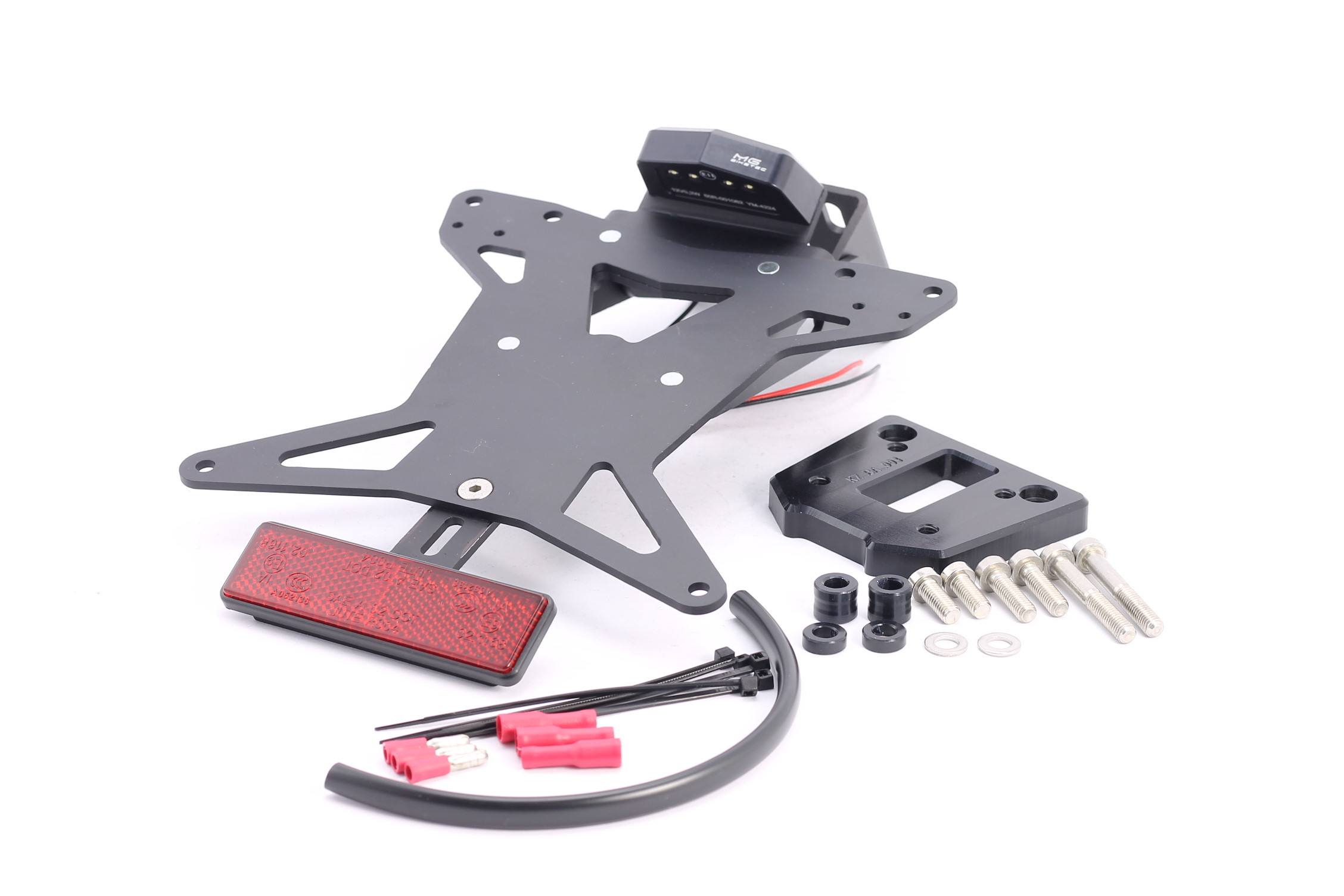 Die Halterung verfügt über eine voll einstellbare Nummerntafel- und Blinkeraufnahme, sodass sich der Winkel individuell anpassen lässt. Durch die integrierte LED-Kennzeichenbeleuchtung und den Reflektor – beide mit ECE-Zulassung – entspricht der Halter allen gesetzlichen Anforderungen. Zudem ist die Montage dank steckfertiger Verbindung und mitgeliefertem Montagematerial besonders einfach. Drei verschiedene Halterplattengrößen decken dabei die wichtigsten Länderspezifikationen ab, von Deutschland und Österreich bis hin zu Großbritannien und der Schweiz.