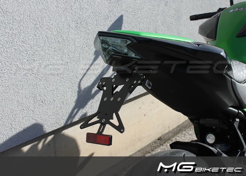 Der MG Biketec Kennzeichenhalter passend für Kawasaki Z800 / Z800e ab 2013–2016 überzeugt durch seine hochwertige Verarbeitung und das sportliche Design. Die CNC-gefräste Aluminiumkonstruktion bietet maximale Stabilität bei minimalem Gewicht. Dank matt-schwarz eloxierter Oberfläche ist der Kennzeichenträger optimal gegen Witterungseinflüsse geschützt und wertet die Heckpartie Ihres Motorrads optisch deutlich auf.