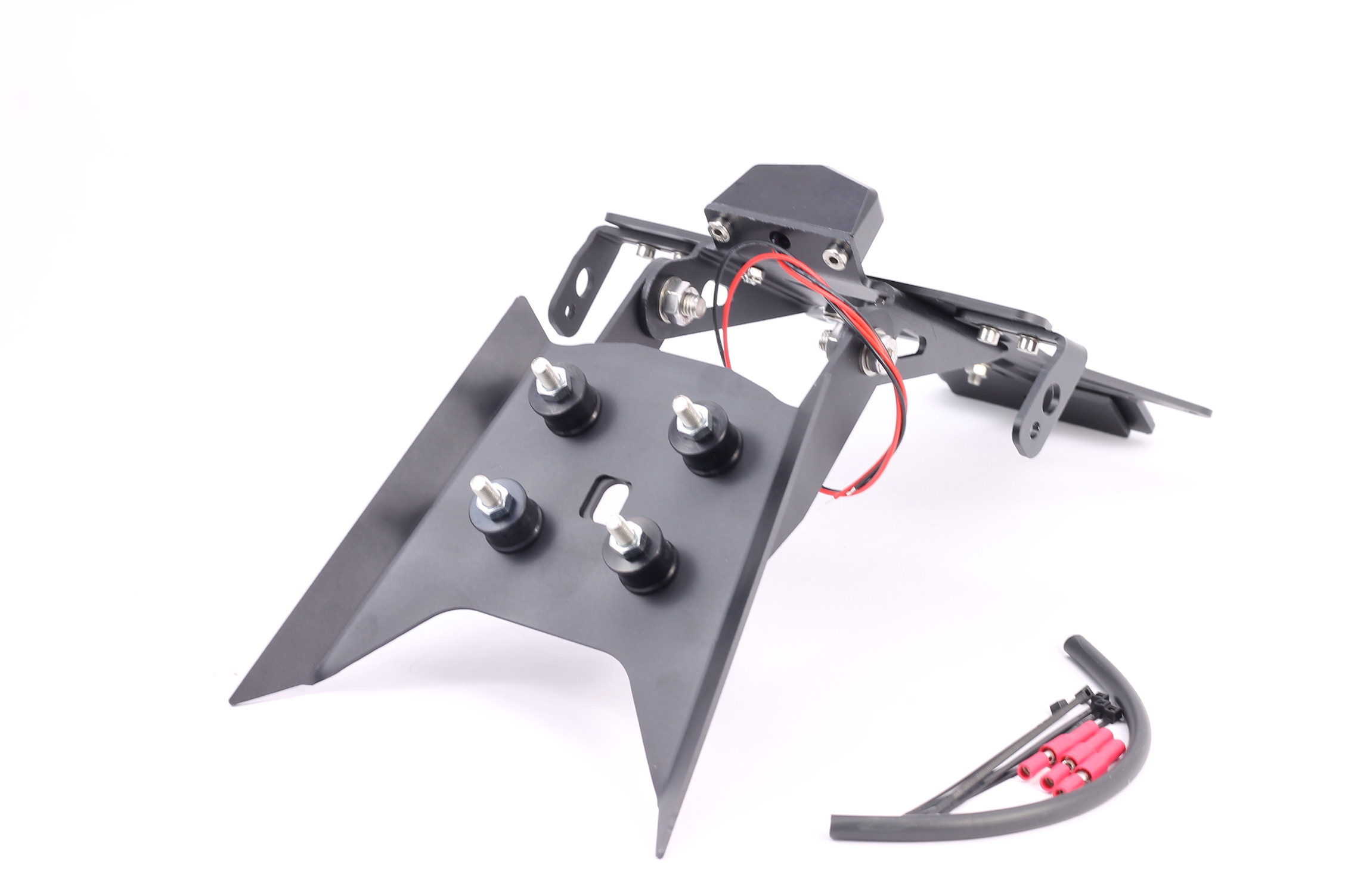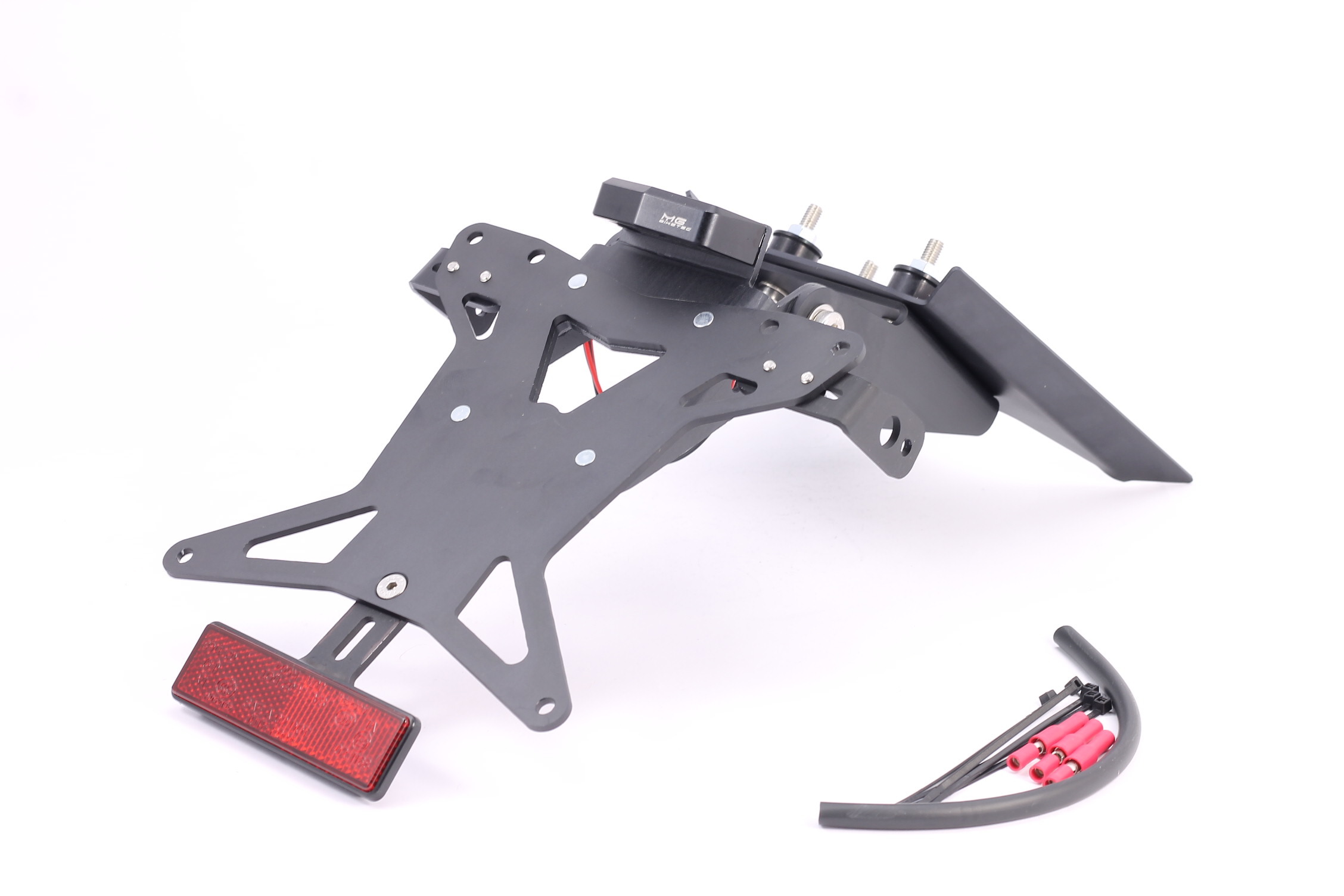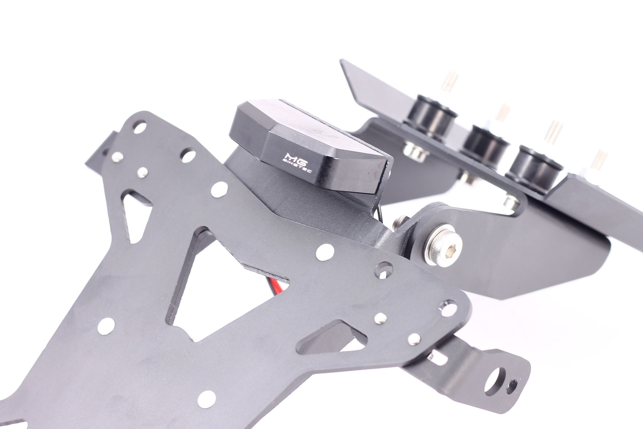 Der MG Biketec Kennzeichenhalter passend für KTM 125 Duke 2017–2019 überzeugt durch seine präzise Verarbeitung und das sportlich-edle Design. Gefertigt aus CNC-gefrästem Aluminium und mit einer matt-schwarz eloxierten Oberfläche versehen, bietet dieser Halter eine langlebige und korrosionsbeständige Lösung für Ihr Motorrad. Durch den voll verstellbaren Winkel und die flexible Blinkeraufnahme lässt sich der Kennzeichenhalter individuell anpassen. Die integrierte LED-Kennzeichenbeleuchtung und der ECE-zertifizierte Reflektor sorgen dabei für maximale Sicherheit im Straßenverkehr.