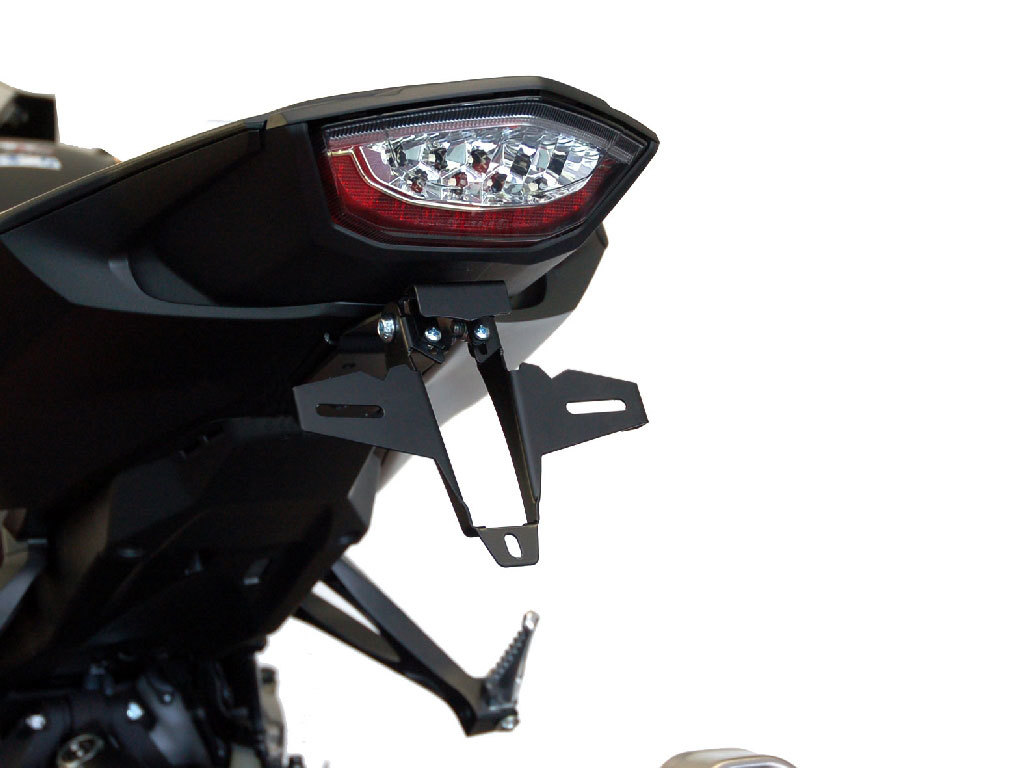 Der Kennzeichenhalter IQ1 überzeugt durch eine besonders kompakte Bauweise und ein sportliches Design, passend für Honda CBR1000RR SP und SP2 der Baujahre 2017 bis 2020. Das Modell erlaubt die Montage von Originalblinkern oder Zubehörblinkern, wobei die Blinker neben dem Kennzeichen und der Reflektor unter dem Kennzeichen angebracht werden.