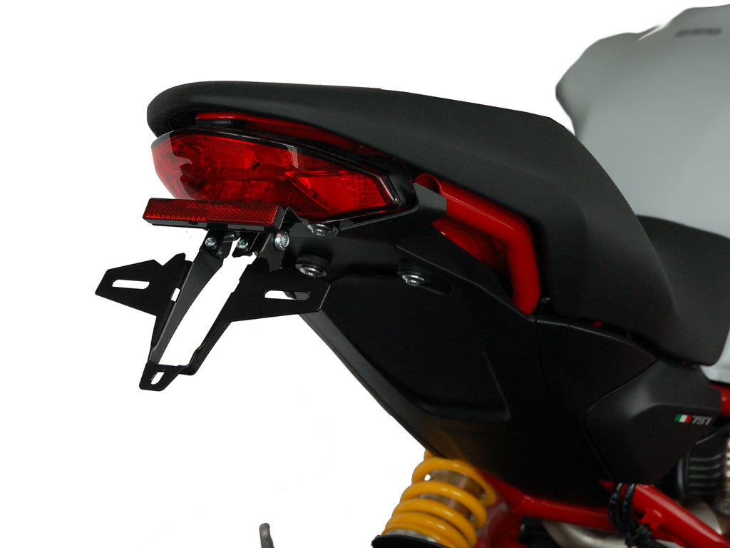 Der Kennzeichenhalter IQ4 passend für Ducati Monster 1200 und 1200 S (Baujahre 2017–2020) überzeugt durch sportliches und modernes Design. Die kompakte Bauweise sorgt für eine schlanke Heckansicht, während die robuste Konstruktion aus hochwertigem Material für dauerhafte Stabilität steht. Der Reflektor ist elegant über dem Kennzeichen positioniert und unterstreicht das ästhetische Gesamtbild Ihres Motorrads.