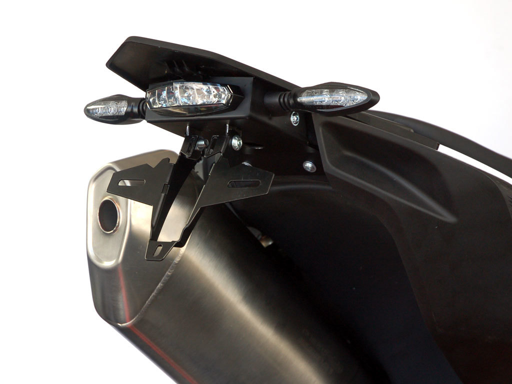 Der IQ1 Kennzeichenhalter verfügt über eine stufenlose, horizontale und vertikale Verstellmöglichkeit, sodass Sie Ihr Kennzeichen optimal positionieren können. Das integrierte Rücklicht mit LED-Kennzeichenbeleuchtung ist ECE-geprüft und verleiht Ihrem Motorrad eine moderne, klare Optik – ein echtes Plus für Sicherheit und Stil.