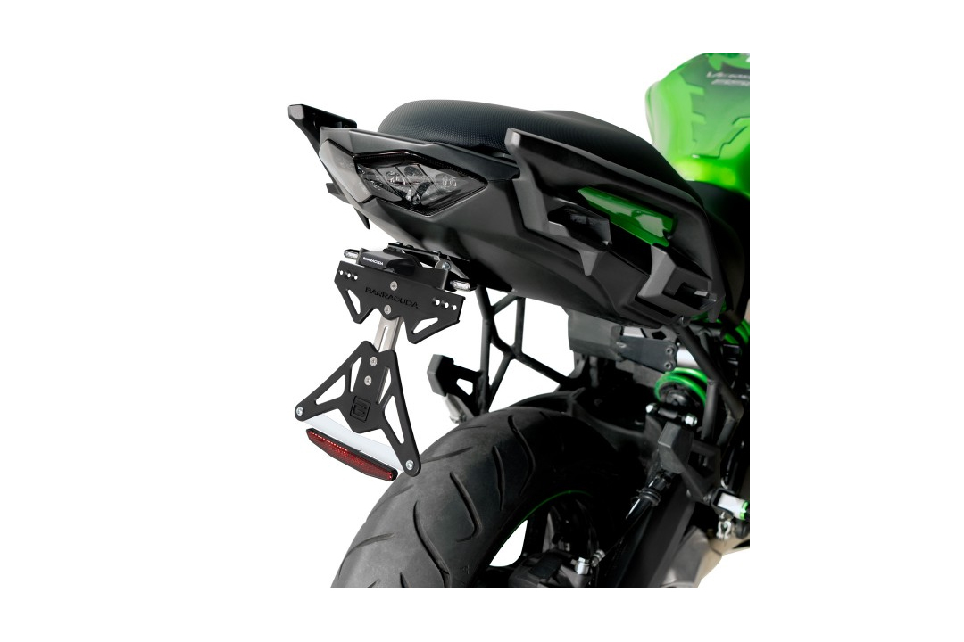 Der Kennzeichenhalter wurde speziell auf die Versys 650 abgestimmt und ist für die Verwendung mit Barracuda Zubehörblinkern ausgelegt. Eine Montage der originalen Blinker ist nicht möglich. Alle für die Installation benötigten Schrauben sind im Lieferumfang enthalten. Die in der deutschen Ausführung separaten Halterungen für die Blinker lassen sich optimal an unterschiedliche Kennzeichengrößen anpassen.