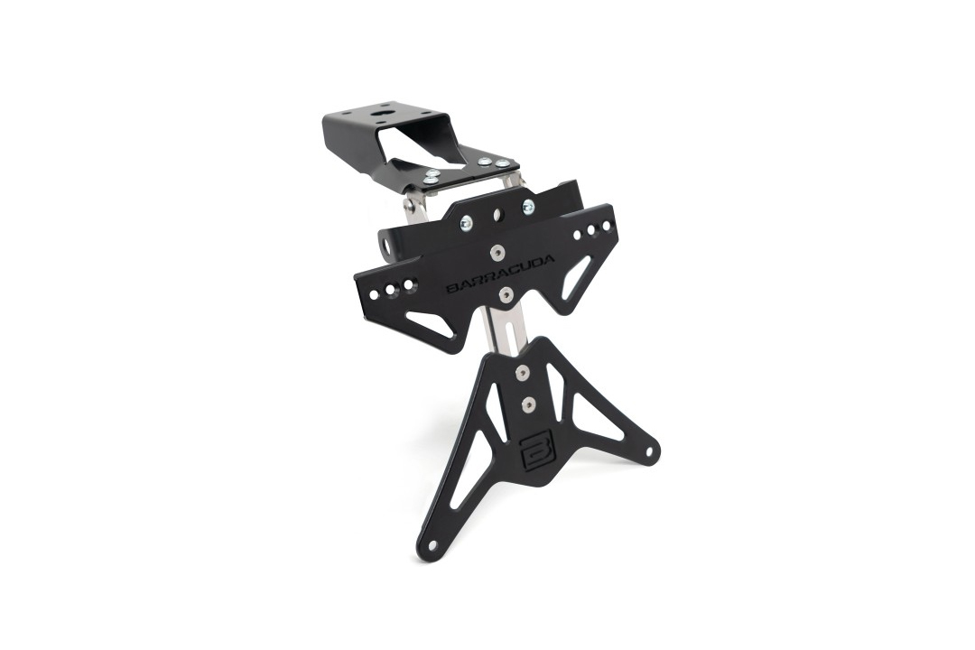 Der Barracuda Kennzeichenhalter passend für Kawasaki Versys 650 überzeugt durch seine hochwertige Verarbeitung aus schwarz eloxiertem Aluminium. Das Material sorgt für ein modernes Design, hohe Stabilität und lange Lebensdauer. Dank des Edelstahlgelenks bietet der Halter eine präzise Einstellbarkeit und minimiert Vibrationen während der Fahrt.