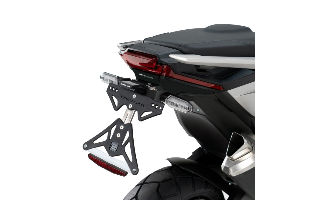 Der Barracuda Kennzeichenhalter ist ein fahrzeugspezifisch entwickeltes Zubehörteil, passend für Honda X-ADV Modelle ab 2021. Gefertigt aus hochwertigem, schwarz eloxiertem Aluminium bietet dieser Kennzeichenhalter eine langlebige und stabile Konstruktion. Das verstellbare Scharnier aus Edelstahl sorgt für hohe Festigkeit sowie vibrationsarmen Halt, selbst bei sportlicher Fahrweise. Der Halter wird mit Unterbau und einem E-geprüften LED-Rücklicht geliefert, wodurch eine rechtssichere Verwendung im Straßenverkehr gewährleistet ist. Die Befestigung erfolgt mit allen notwendigen Schrauben, die im Lieferumfang enthalten sind. Die Aufnahme für Originalblinker ist direkt integriert, die Blinkerhalter können individuell auf die Kennzeichengröße abgestimmt werden. Die Kennzeichenbeleuchtung (Art.-Nr. BC-N1002) sowie der Rückstrahler (Art.-Nr. BC-NCAT) sind optional erhältlich und müssen separat bestellt werden.