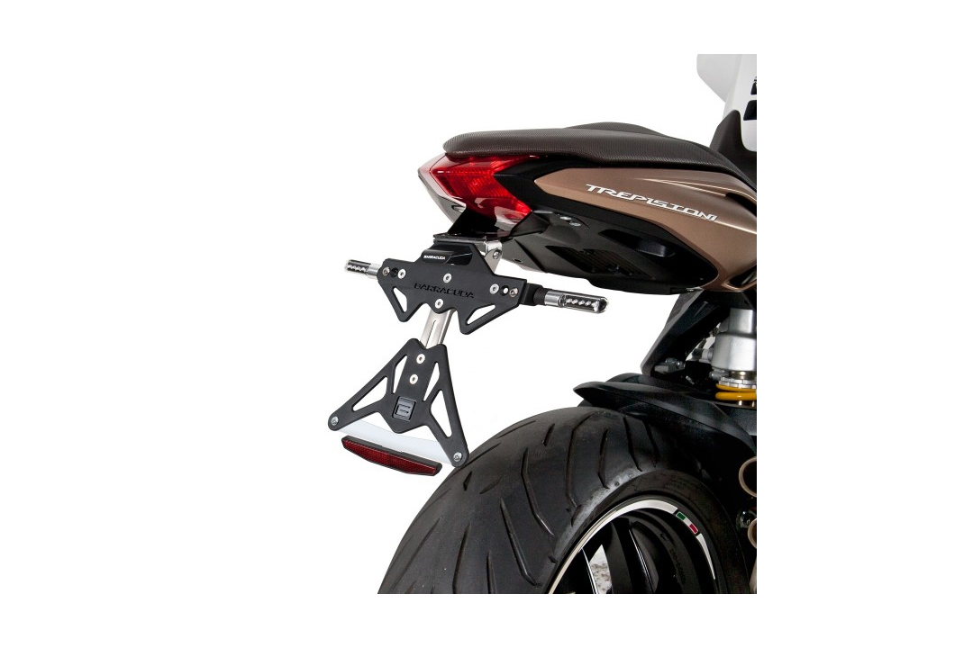 Der Barracuda Kennzeichenhalter passend für die MV Agusta Brutale 675 und 800 (Baujahr 2014–2016) überzeugt durch hochwertige Materialien, präzise Verarbeitung und sportliches Design. Gefertigt aus schwarz eloxiertem Aluminium bietet er eine stabile, vibrationsarme Lösung für Ihren Umbau. Das verstellbare Scharnier aus Edelstahl sorgt für hohe Stabilität und eine flexible Anpassung an unterschiedliche Kennzeichengrößen. Die geschraubten Haltewinkel sind auf die deutsche Kennzeichennorm ausgelegt. Der Halter ist speziell für die Montage von Barracuda Blinkern konstruiert, die originale Blinkerinstallation ist nicht möglich. Für die vollständige Montage werden eine Kennzeichenbeleuchtung (Art.-Nr. BC-N1002) sowie ein Rückstrahler (Art.-Nr. BC-NCAT) benötigt, welche separat erhältlich sind.