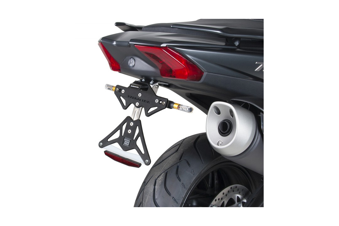 Der hochwertige Barracuda Kennzeichenhalter passend für Yamaha T-MAX 530 (Modelljahre 2017–2018) überzeugt durch präzise Passform, modernes Design und maximale Stabilität. Gefertigt aus schwarz eloxiertem Aluminium, vereint er Leichtgewicht mit einer robusten, korrosionsbeständigen Oberfläche. Das verstellbare Scharnier aus Edelstahl reduziert Vibrationen und sichert eine zuverlässige Befestigung des Kennzeichens auch bei hohen Geschwindigkeiten.