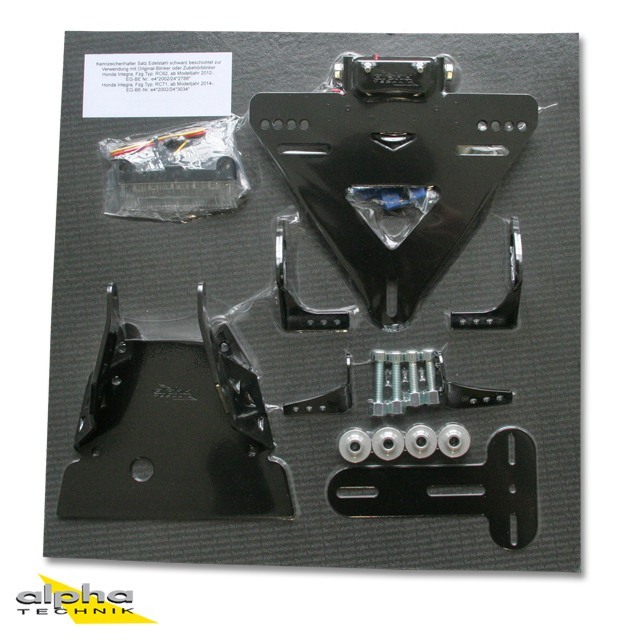 Zum Lieferumfang gehören LED-Kennzeichenbeleuchtung, Adapter für Original- und Zubehörblinker sowie Rückstrahleradapter. Damit ist der Kennzeichenhalter optimal ausgestattet, um Ihr Motorrad sportlicher und moderner wirken zu lassen.