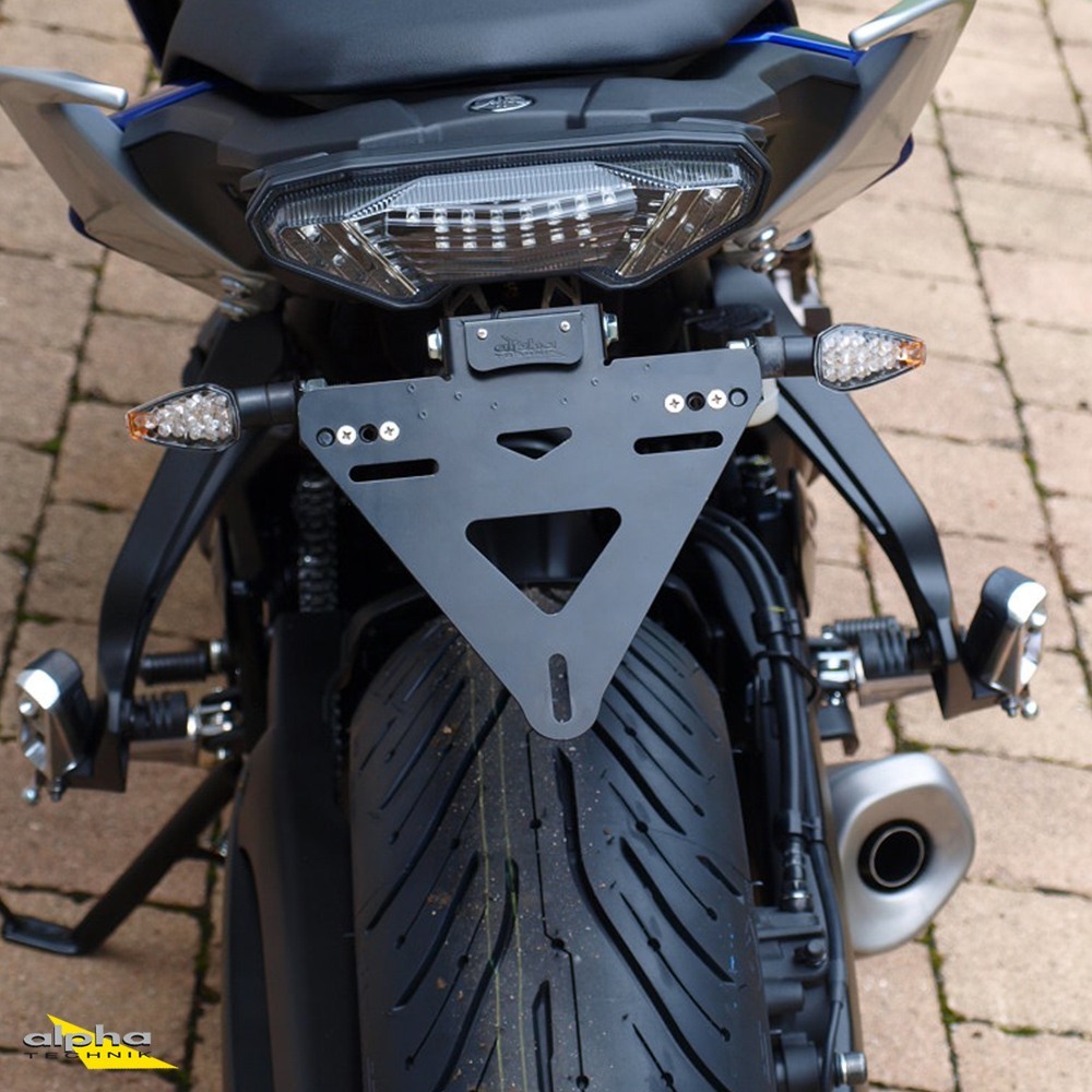 Der alpha Technik Kennzeichenhalter passend für Yamaha MT07 Tracer700 RM14 und RM15 überzeugt durch sportliches Design, hohe Stabilität und exzellente Verarbeitung. Durch seine schwarze kathodische Tauchlackierung wirkt er edel und ist zugleich korrosionsgeschützt. Hergestellt aus Edelstahl, ist er deutlich robuster als Aluminium, bleibt mit nur 240 g jedoch angenehm leicht. Die Halterung ist in der Neigung individuell verstellbar und mit einer Breite von 180 mm ideal auf moderne, schmale Kennzeichen abgestimmt. Adapter für Original- und Zubehörblinker sind in der Breite anpassbar, wodurch eine flexible Montage auch bei Verwendung von Seitenkoffern möglich ist. Ebenso enthalten sind Adapter für Rückstrahler sowie eine helle LED-Kennzeichenbeleuchtung inklusive Gehäuse und Verkabelung. Damit bietet dieser Kennzeichenhalter eine langlebige und optisch ansprechende Lösung für Ihr Motorrad.