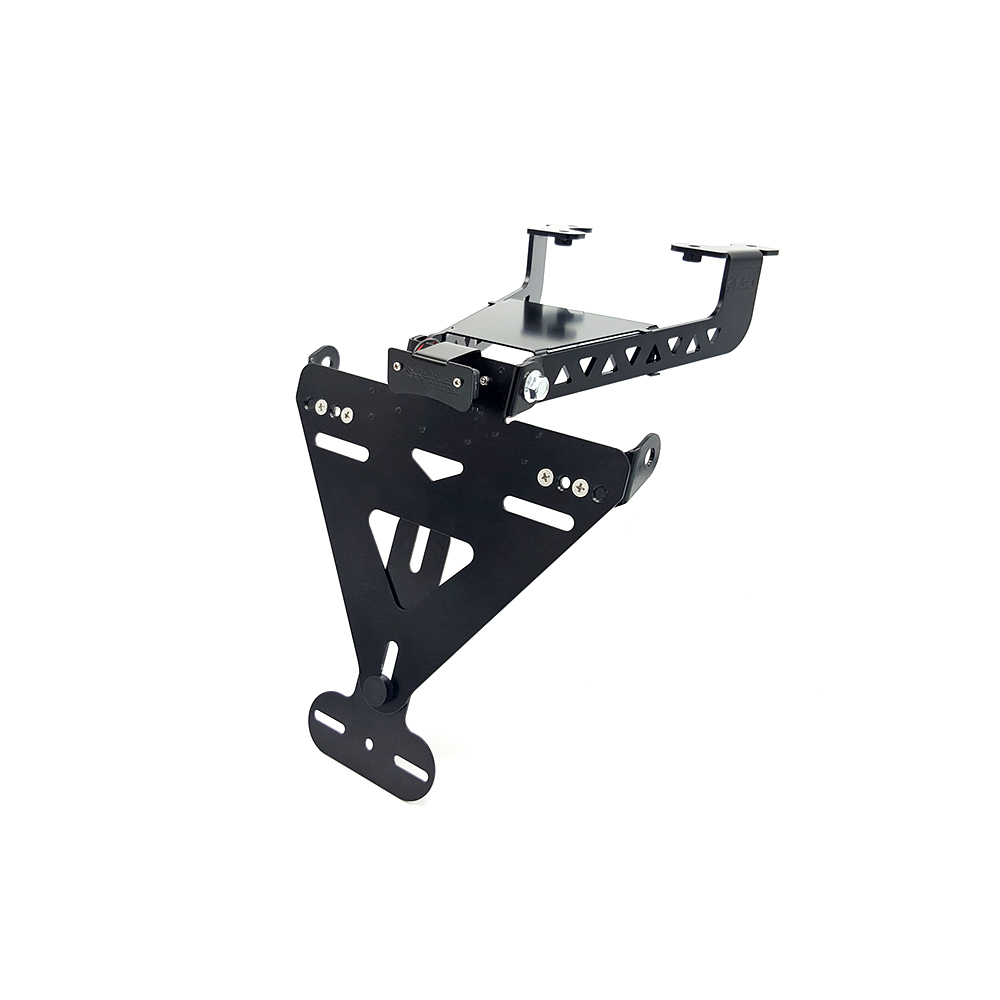 Die Halterung mit einer Breite von 180 mm eignet sich ideal für moderne, schmale Kennzeichen. Im Lieferumfang enthalten sind außerdem verstellbare Adapter, mit denen Original- sowie Zubehörblinker montiert werden können. Eine helle LED-Kennzeichenbeleuchtung mit Gehäuse und Verkabelung sowie Adapter für Rückstrahler runden das Komplettpaket ab. Dank der robusten Beschichtung ist der Halter langlebig und korrosionsbeständig – auch unter anspruchsvollen Bedingungen.