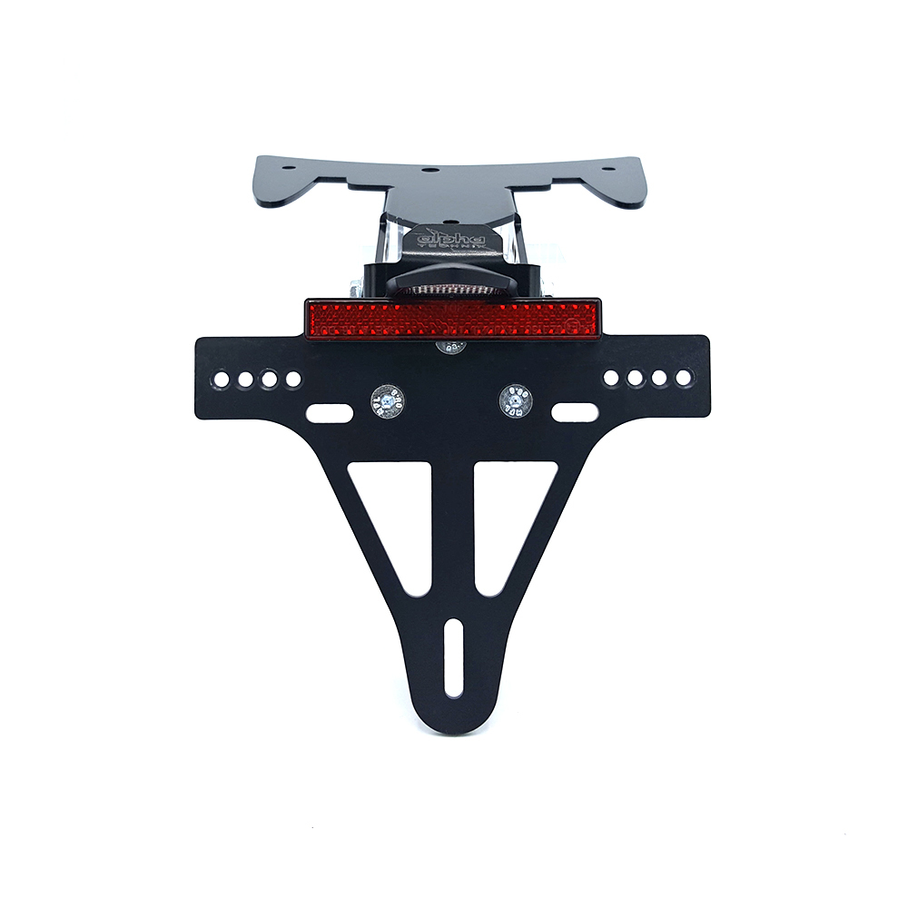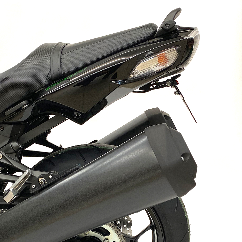 Der hochwertige Kennzeichenhalter von alpha Technik wurde speziell passend für die Kawasaki ZZR1400 Typ ZXT40H ab Modelljahr 2016 entwickelt. Hergestellt aus robustem Edelstahl und präzise geschnittenem Aluminium bietet er eine langlebige, rostfreie Qualität. Die elegante schwarze Oberflächenveredelung durch kathodische Tauchlackierung bzw. Eloxalschicht sorgt für ein sportliches Erscheinungsbild.