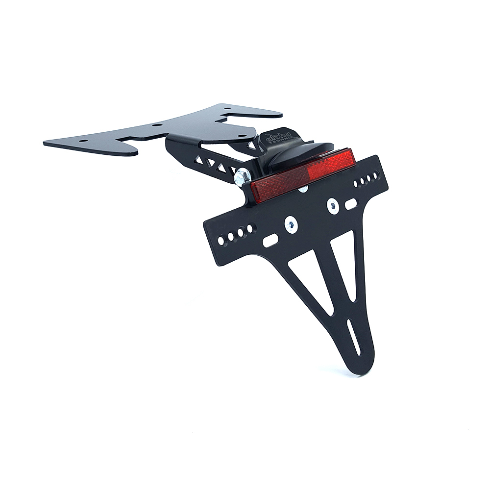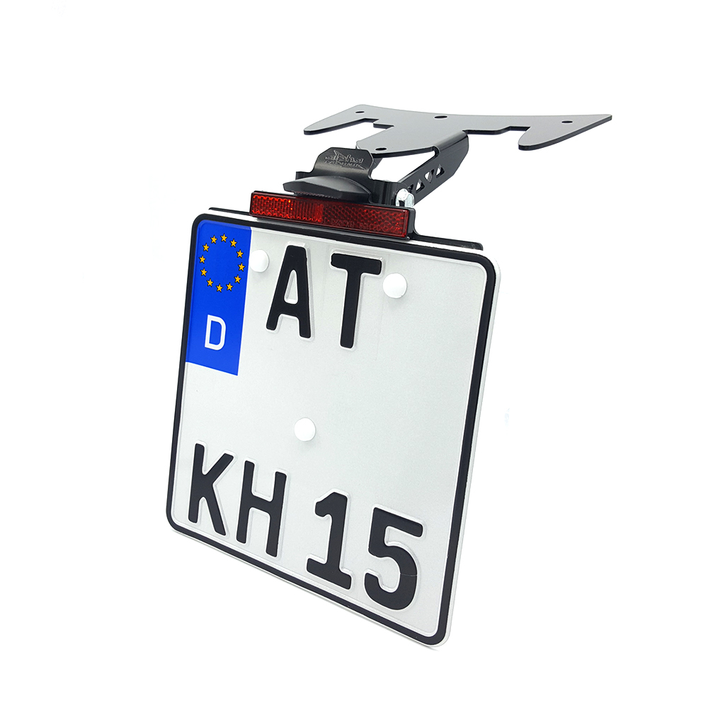 Mit einer Rückenplattenbreite von ca. 180 mm ist der Kennzeichenhalter ideal auf moderne, schmale Kennzeichen abgestimmt. Das durchdachte Design kombiniert Funktionalität, Stabilität und ein sportliches Erscheinungsbild – perfekt für anspruchsvolle Motorradfahrerinnen und -fahrer, die Wert auf Qualität „Made in Germany“ legen.