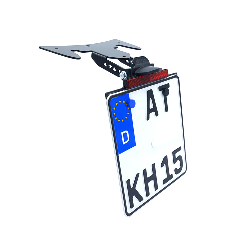 Dank der stufenlos verstellbaren Neigung lässt sich der Kennzeichenwinkel individuell anpassen. Die Montage gestaltet sich einfach, da alle Befestigungsmaterialien bereits im Lieferumfang enthalten sind. Kennzeichenleuchte und Rückstrahler verfügen über ein E-Prüfzeichen und erfüllen somit alle gesetzlichen Anforderungen.