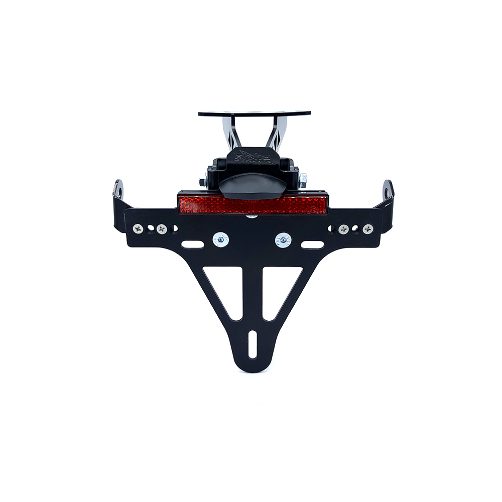 Der kurze Kennzeichenhalter punktet durch einfache Montage dank vollständigem Montagematerial und beiliegender Einbauanleitung. Die integrierte Kennzeichenleuchte und der Rückstrahler sind mit E-Prüfzeichen versehen. Dank der Rückenplattenbreite von ca. 180 mm ist der Halter optimal auf schmale, moderne Nummernschilder abgestimmt.
