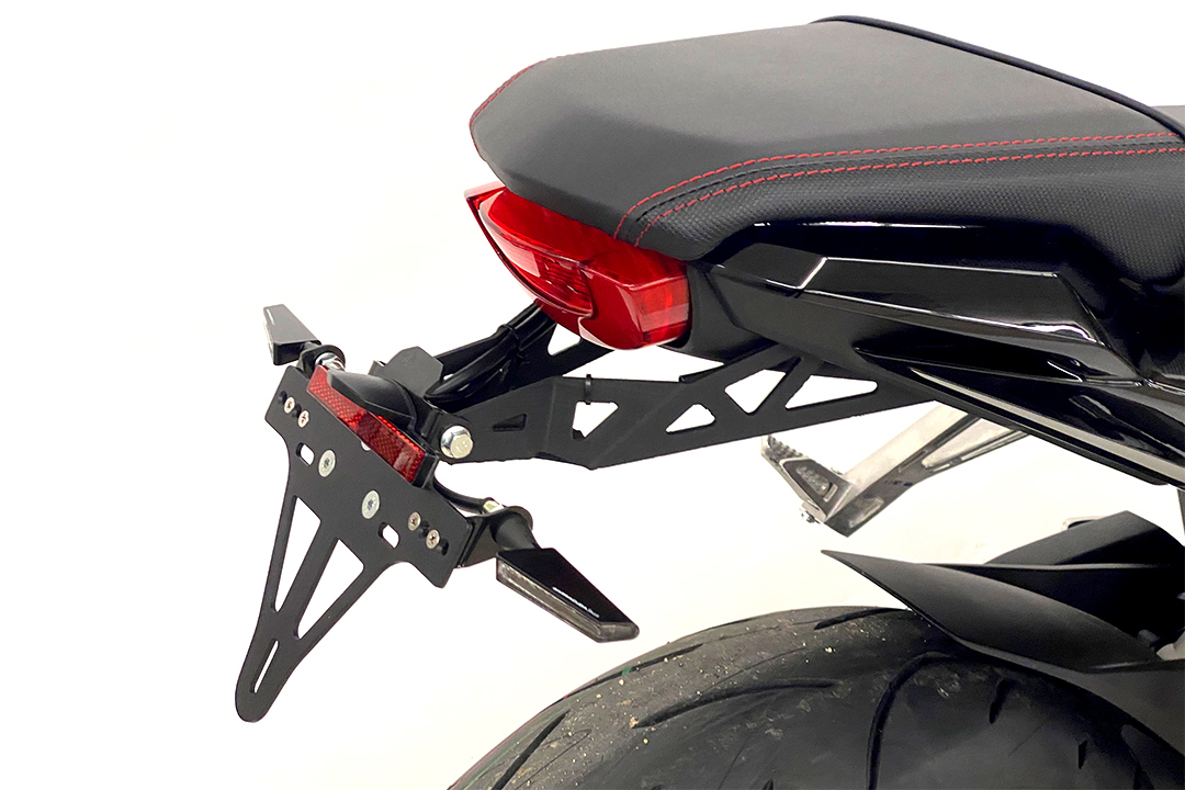 Der alpha Technik Kennzeichenhalter passend für Honda CB650R, CBR650R und CB1000 Hornet kombiniert sportliches Design mit hochwertiger Verarbeitung. Dank präziser Fertigung aus Edelstahl und Aluminium ist der Halter nicht nur rostfrei und langlebig, sondern auch leicht und stabil. Durch die schwarze kathodische Tauchlackierung bzw. die Eloxalschicht erhält der Halter eine elegante, widerstandsfähige Oberfläche. Die Neigung des Kennzeichens lässt sich stufenlos einstellen – für eine individuelle Optik und optimale Sichtbarkeit.