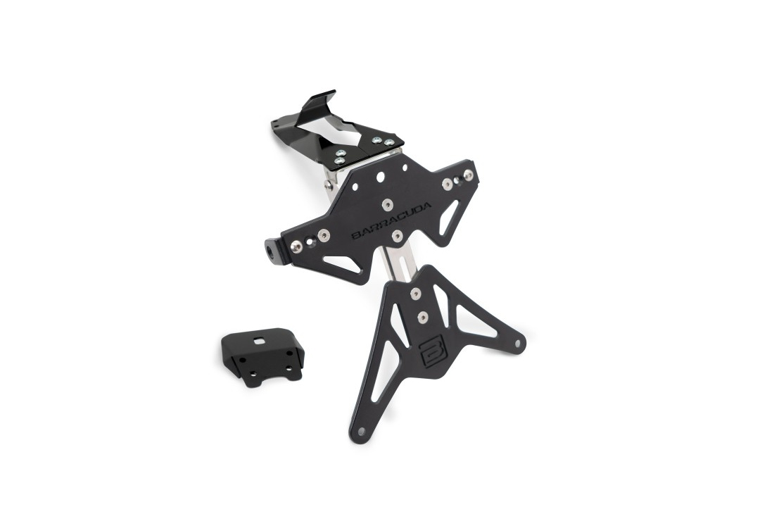 Der Barracuda Kennzeichenhalter passend für Ducati Streetfighter V4 / V2 sowie Panigale V4 / V2 ab dem Modelljahr 2020 wird aus hochwertigem, schwarz eloxiertem Aluminium gefertigt. Das robuste und korrosionsbeständige Material gewährleistet eine lange Lebensdauer auch unter anspruchsvollen Bedingungen. Ein Edelstahl-Scharnier sorgt für hohe Stabilität und minimiert Vibrationen während der Fahrt.