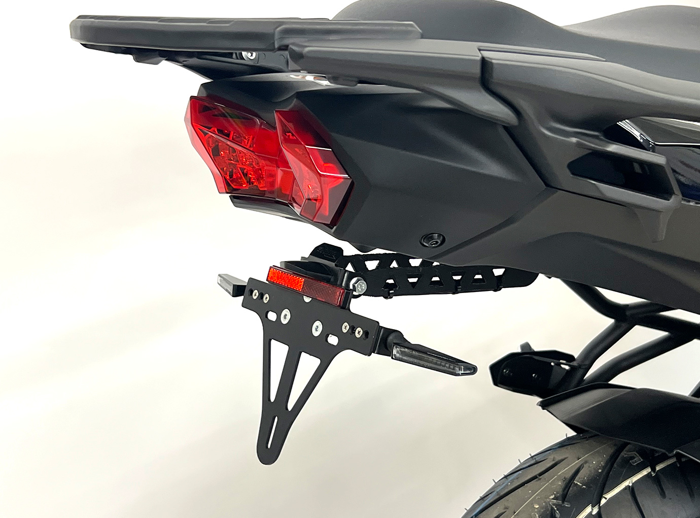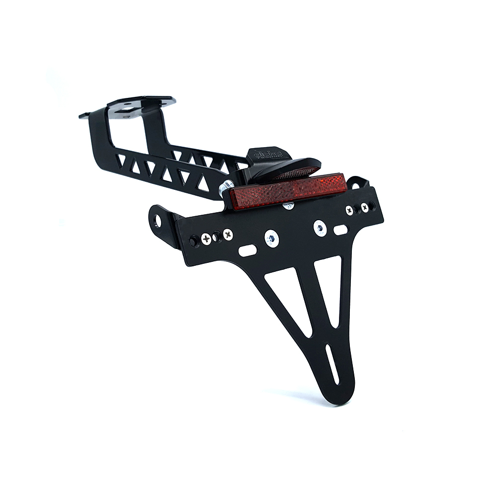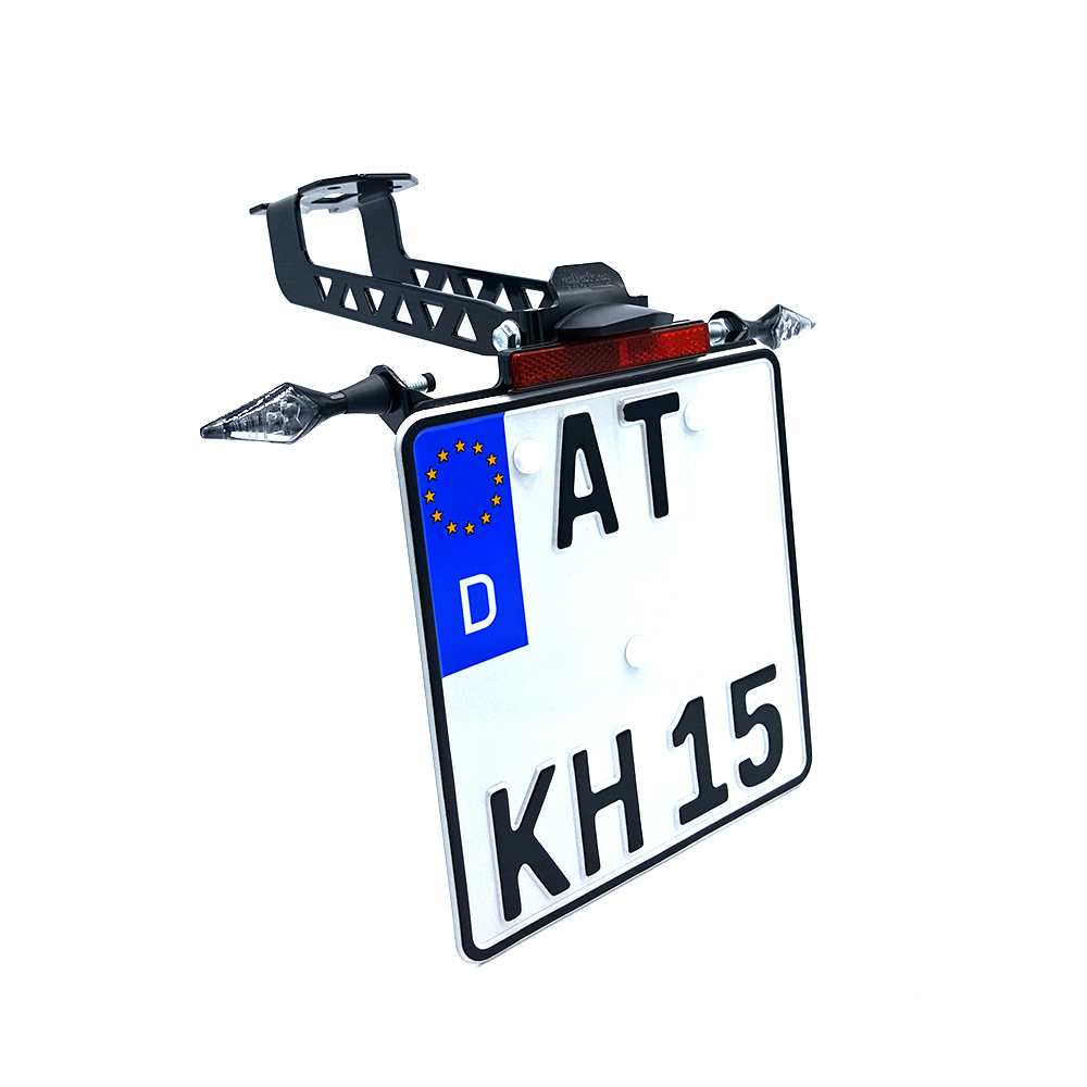 Der alpha Technik Kennzeichenhalter ist speziell für die Modelle Kawasaki Versys 1000 Typ LZT00C (ab Modelljahr 2019) und Versys 1100 Typ LZT10A (ab Modelljahr 2025) entwickelt. Das hochwertige Design kombiniert Edelstahl und Aluminium – präzise lasergeschnitten, rostfrei und langlebig. Dank der stufenlos verstellbaren Neigung lässt sich der Halter individuell anpassen. Durch die schwarze kathodische Tauchlackierung bzw. Eloxalschicht erhält der Kennzeichenhalter eine elegante, sportliche Optik. Alle benötigten Befestigungsmaterialien, inklusive Halterung für Zubehör-Blinker (M8 und M10 Gewinde), sind im Lieferumfang enthalten. Rückstrahler und Kennzeichenbeleuchtung verfügen selbstverständlich über ein E-Prüfzeichen, während der Abstand der Blinker verstellbar und damit richtlinienkonform ist.