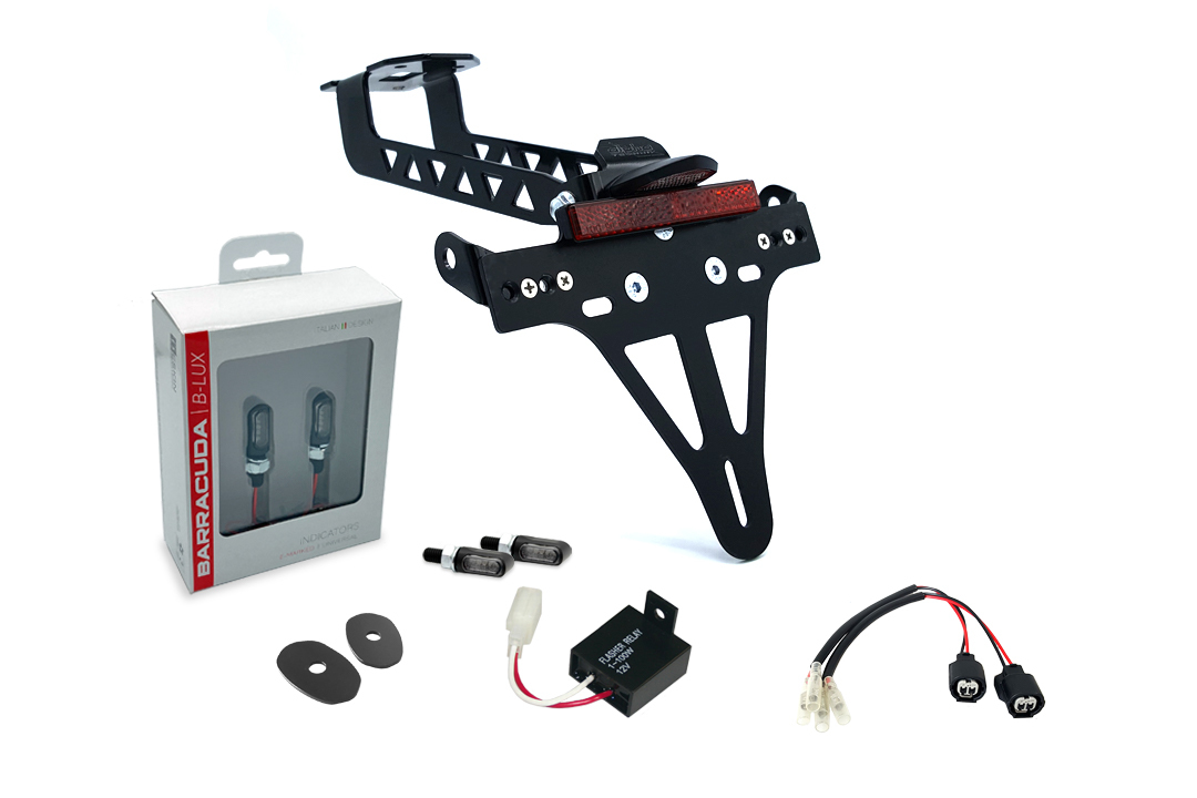 - Komplettset inkl. Kennzeichenhalter, LED-Blinker, Relais und Adapter
