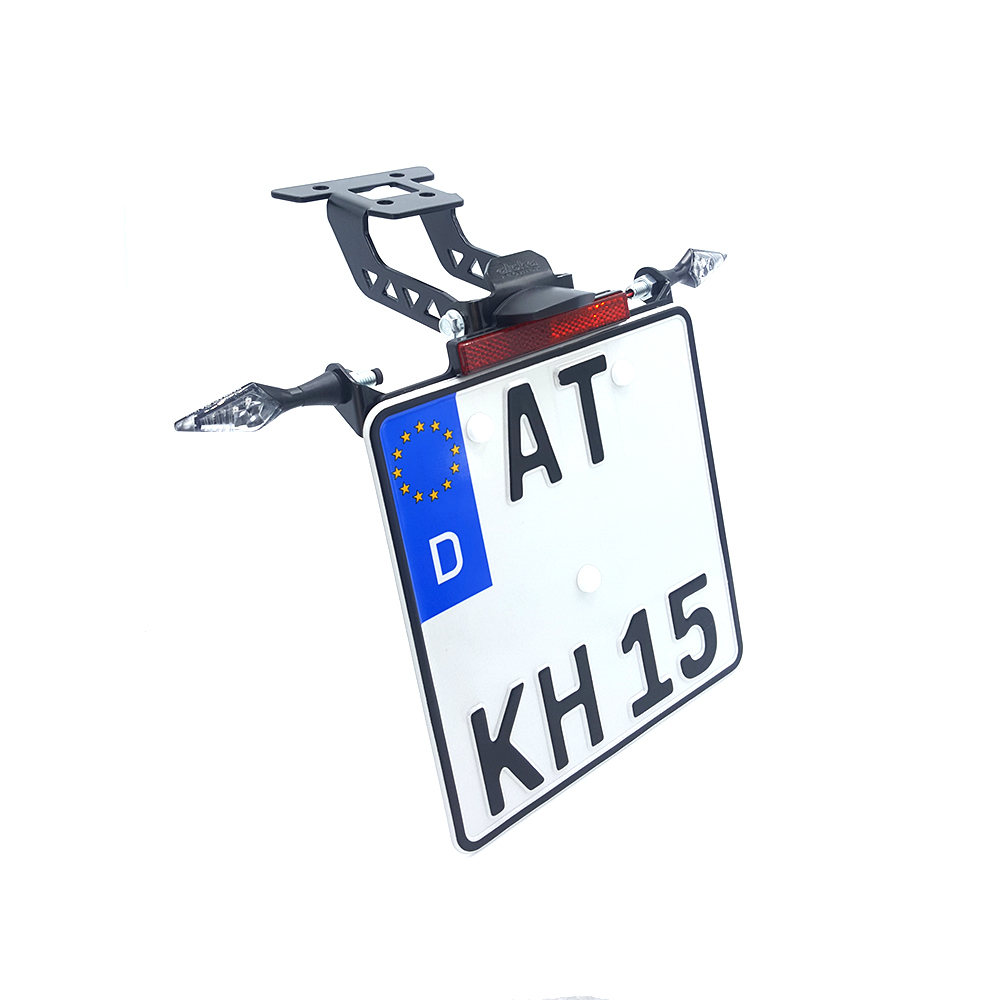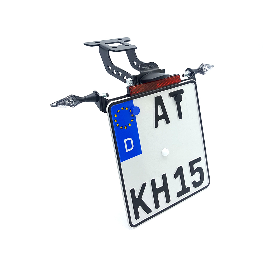 Für die Montage der originalen Blinker sind separate Adapter erforderlich, die unter „Zusatzartikel“ erhältlich sind. Der kurze Kennzeichenhalter ermöglicht eine schnelle und einfache Installation – eine ausführliche Einbauanleitung liegt bei.