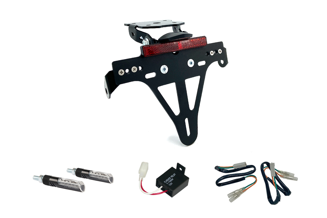 Das hochwertige Kennzeichenhalter-Blinker-Kit IDEA wurde speziell entwickelt, um den hinteren Bereich Ihrer Kawasaki Z800 optisch und technisch aufzuwerten. Dieses Set vereint sportliches Design mit perfekter Passform und enthält alle Komponenten, die Sie für einen vollständigen und legalen Umbau benötigen. Der Kennzeichenhalter von alpha Technik überzeugt durch seine robuste Konstruktion aus Edelstahl und Aluminium, präzisen Laserschnitt und eine schwarze kathodische Tauchlackierung, die ihn widerstandsfähig gegen Korrosion und Schmutz macht. Die stufenlos verstellbare Neigung ermöglicht eine individuelle Anpassung, während die integrierte Kennzeichenleuchte und der Rückstrahler mit E-Prüfzeichen für die nötige Straßenzulassung sorgen.
