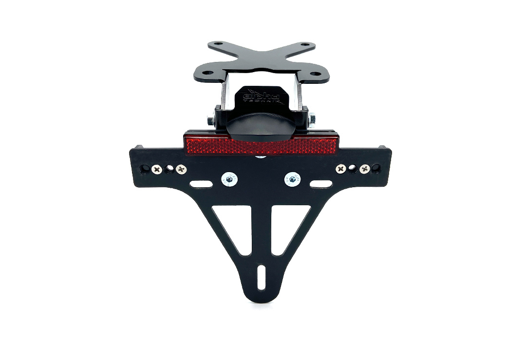 Der alpha Technik Kennzeichenhalter passend für Yamaha FZ1 und FZ8 Fazer überzeugt durch sportliches Design, hohe Funktionalität und einfache Montage. Der Kennzeichenhalter wird aus rostfreiem Edelstahl und Aluminium gefertigt und besticht durch seine schwarze kathodische Tauchlackierung bzw. Eloxalschicht. Diese sorgt nicht nur für ein elegantes Finish, sondern auch für eine hohe Widerstandsfähigkeit gegen Witterungseinflüsse.