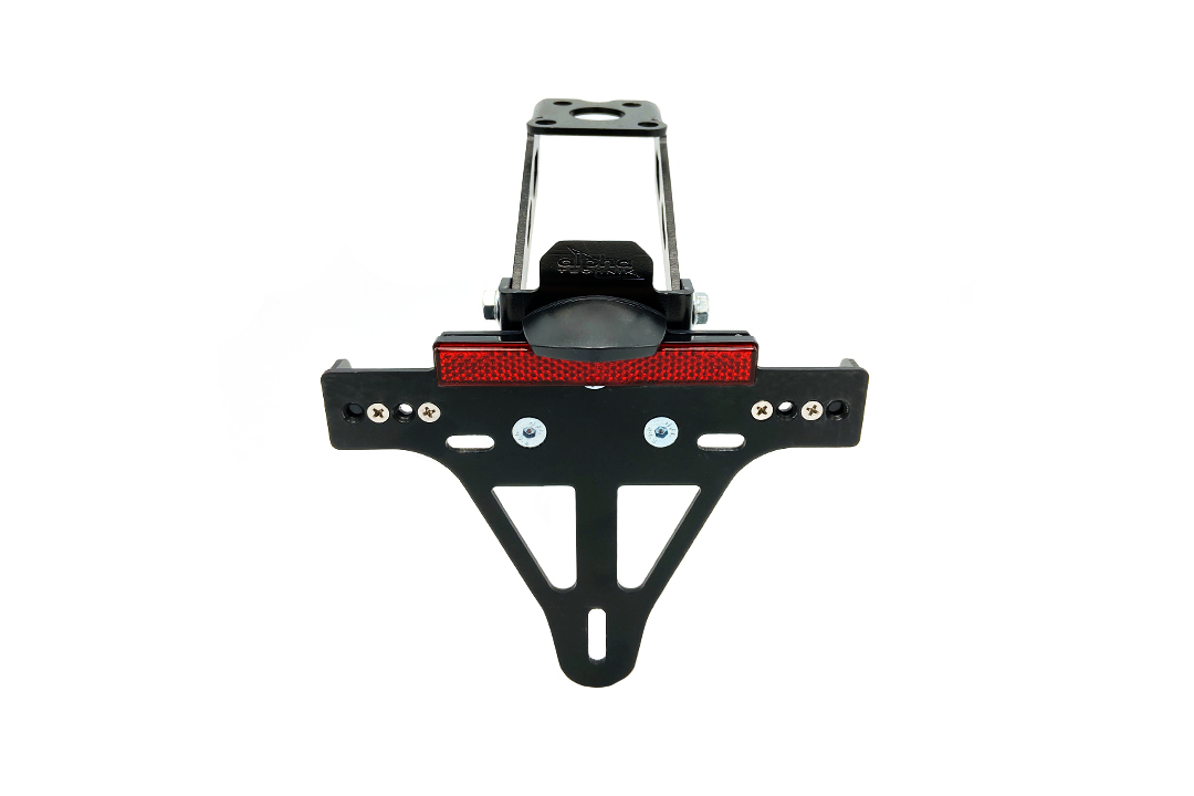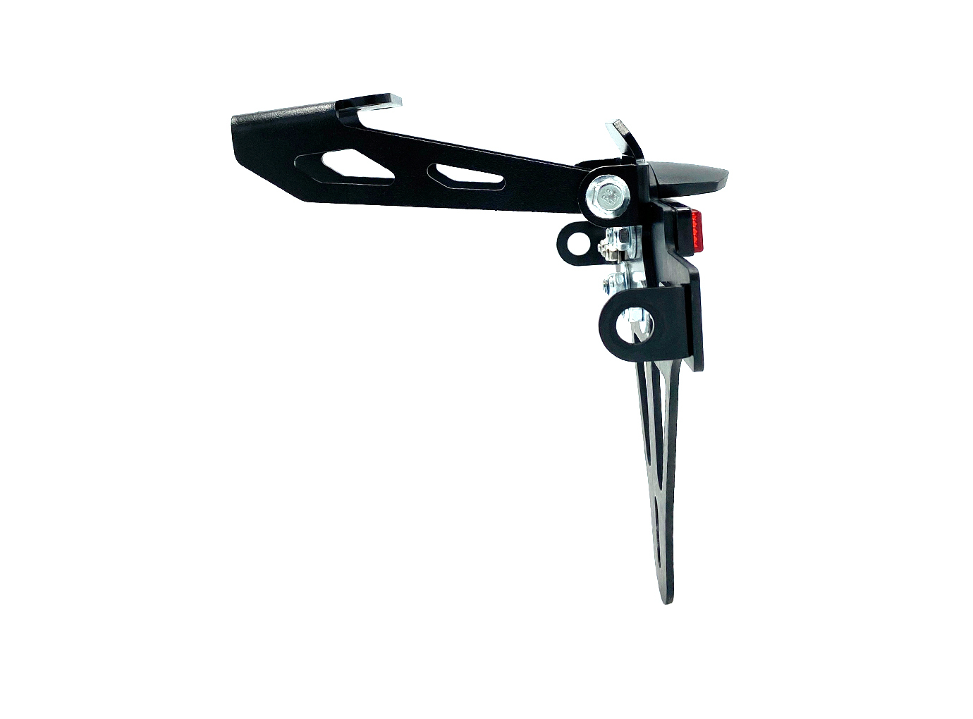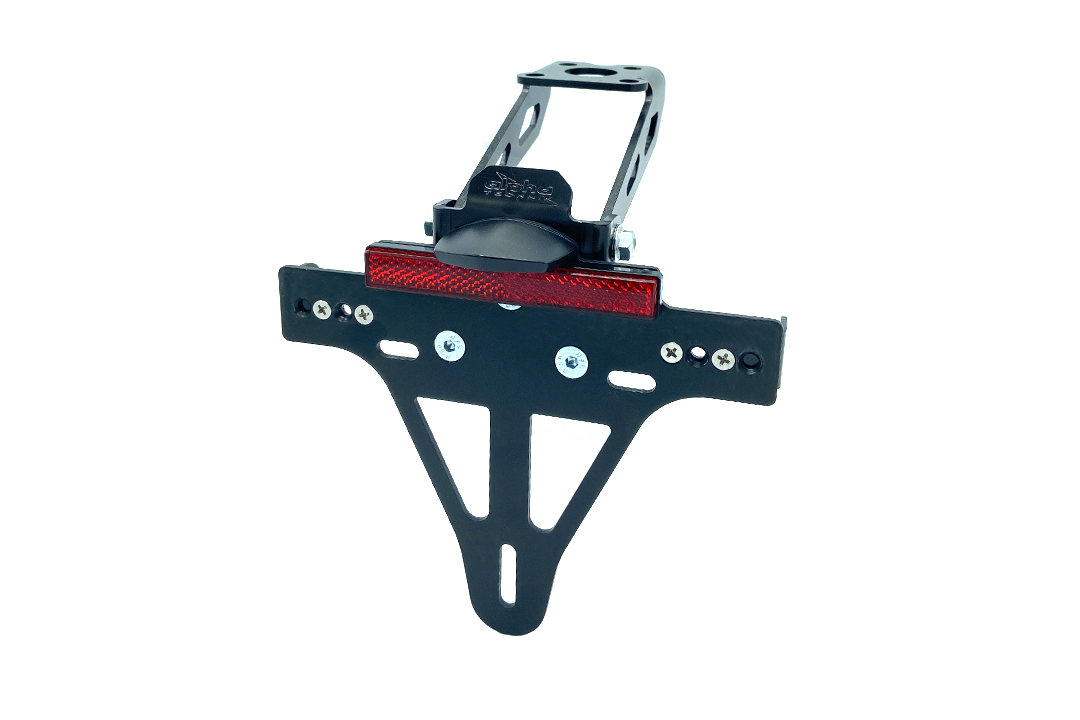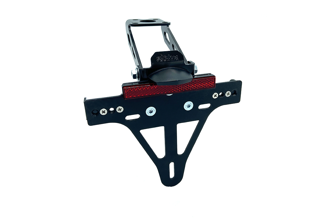 Die Konstruktion überzeugt durch ihr sportliches, kompaktes Design und eine einfache Montage. Dank der stufenlos verstellbaren Neigung können Sie den Winkel individuell anpassen und gleichzeitig die gesetzlichen Vorgaben einhalten. Mit einem integrierten Rückstrahler und einer Kennzeichenbeleuchtung mit E-Prüfzeichen ist der Kennzeichenhalter vollständig straßenzugelassen.