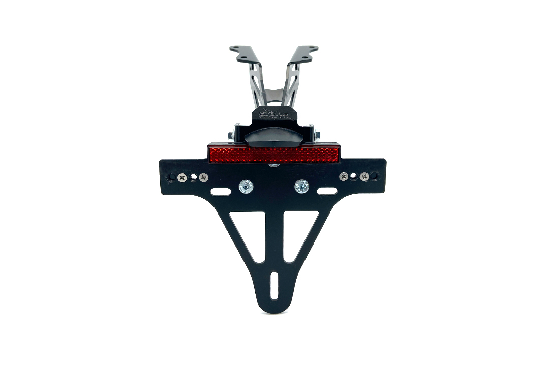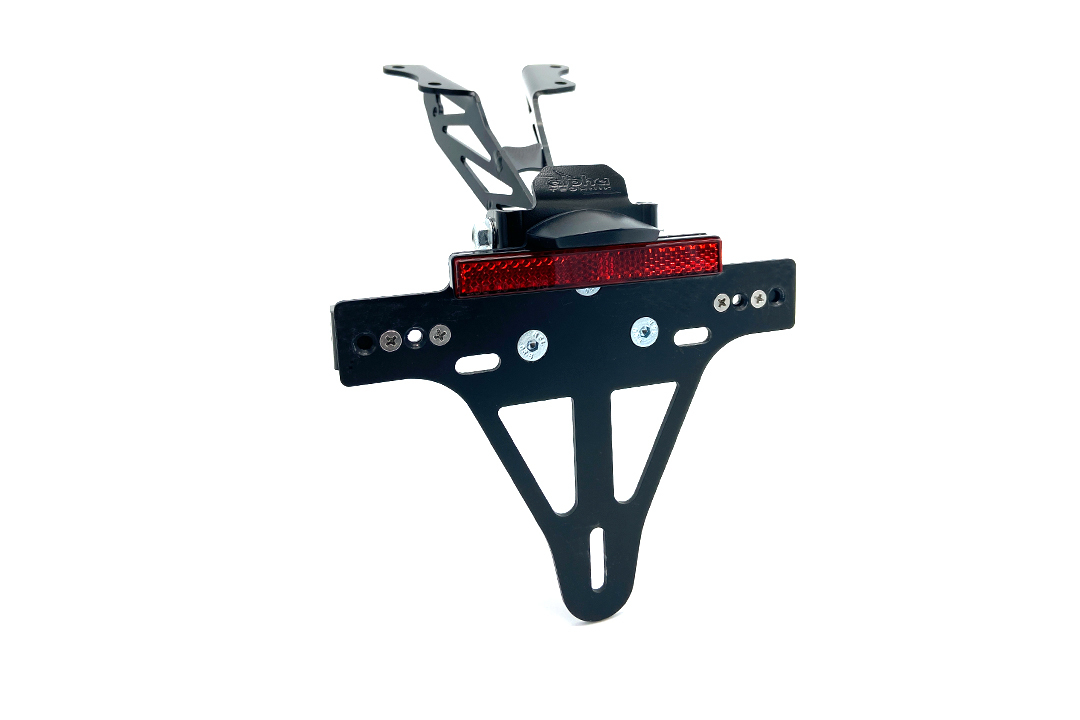 Die Oberfläche ist durch schwarze kathodische Tauchlackierung bzw. schwarze Eloxalschicht hochwertig veredelt. Die Kennzeichenleuchte und der Rückstrahler sind mit E-Prüfzeichen versehen und erfüllen somit alle Anforderungen für den Straßenverkehr. Mitgeliefert werden alle notwendigen Montagematerialien sowie Halterungen für Zubehör-Blinker mit M8- und M10-Gewinde. Für die Montage originaler Blinker stehen entsprechende Adapter als Zusatzartikel zur Verfügung.