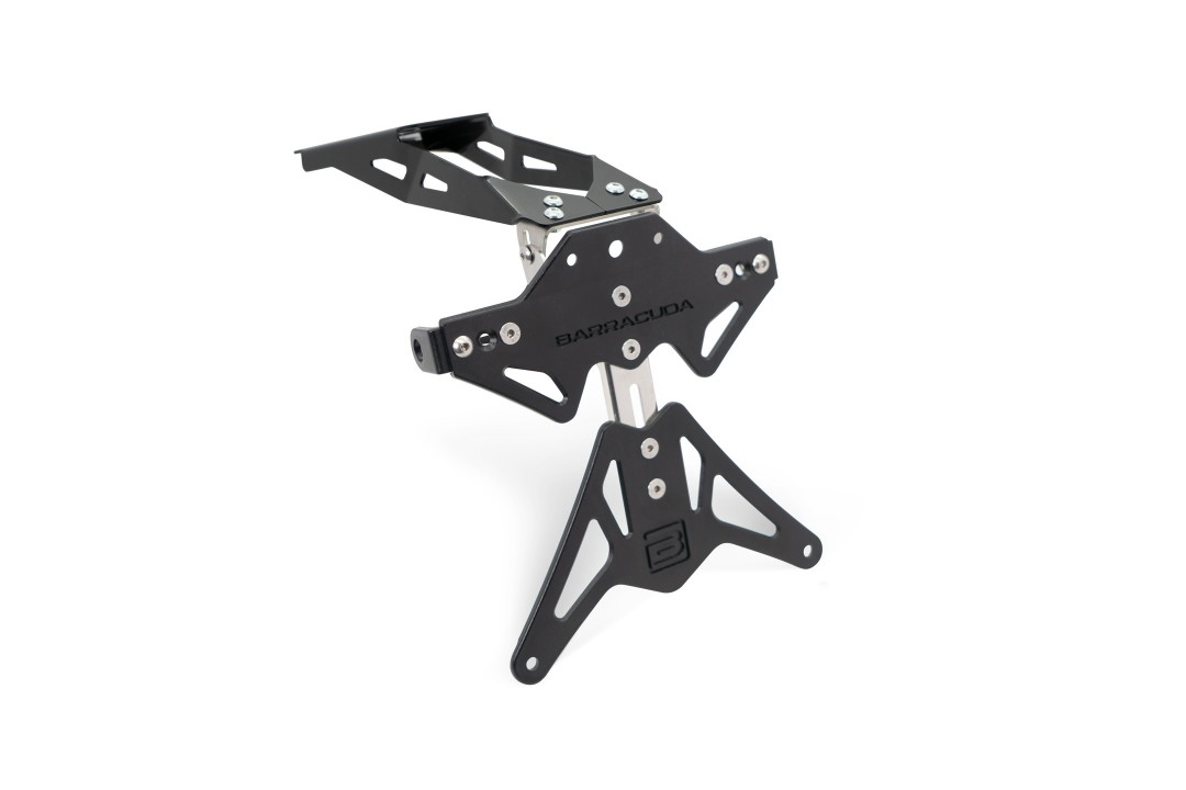 Der Barracuda Kennzeichenhalter besteht aus hochwertigem, schwarz eloxiertem Aluminium und wurde speziell passend für Ducati Monster 937 Modelle ab dem Baujahr 2021 entwickelt. Durch seine präzise Verarbeitung bietet er eine sportliche Optik sowie hohe Stabilität bei minimalem Gewicht. Das verstellbare Scharnier aus Edelstahl sorgt für eine sichere Befestigung und reduziert Vibrationen während der Fahrt. Der Kennzeichenhalter wird komplett mit Verkleidungsunterteil und allen benötigten Montageschrauben geliefert. Die geschraubten Haltewinkel für Zubehörblinker lassen sich individuell auf die Größe Ihres Kennzeichens anpassen. Bitte beachten Sie, dass originale Blinker nicht verwendet werden können. Die Kennzeichenbeleuchtung (Art.-Nr. BC-N1002) und der Rückstrahler (Art.-Nr. BC-NCAT) sind separat erhältlich.