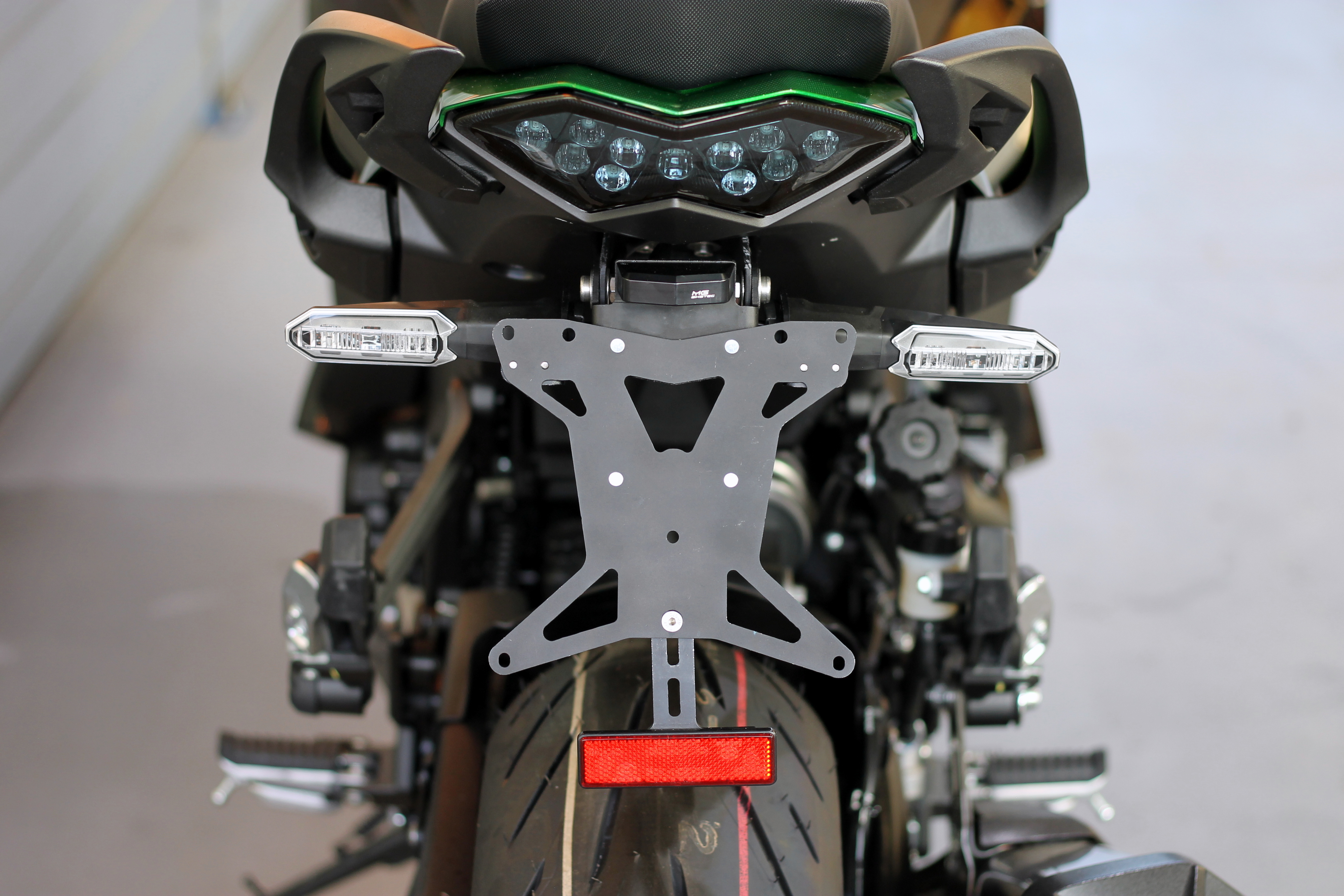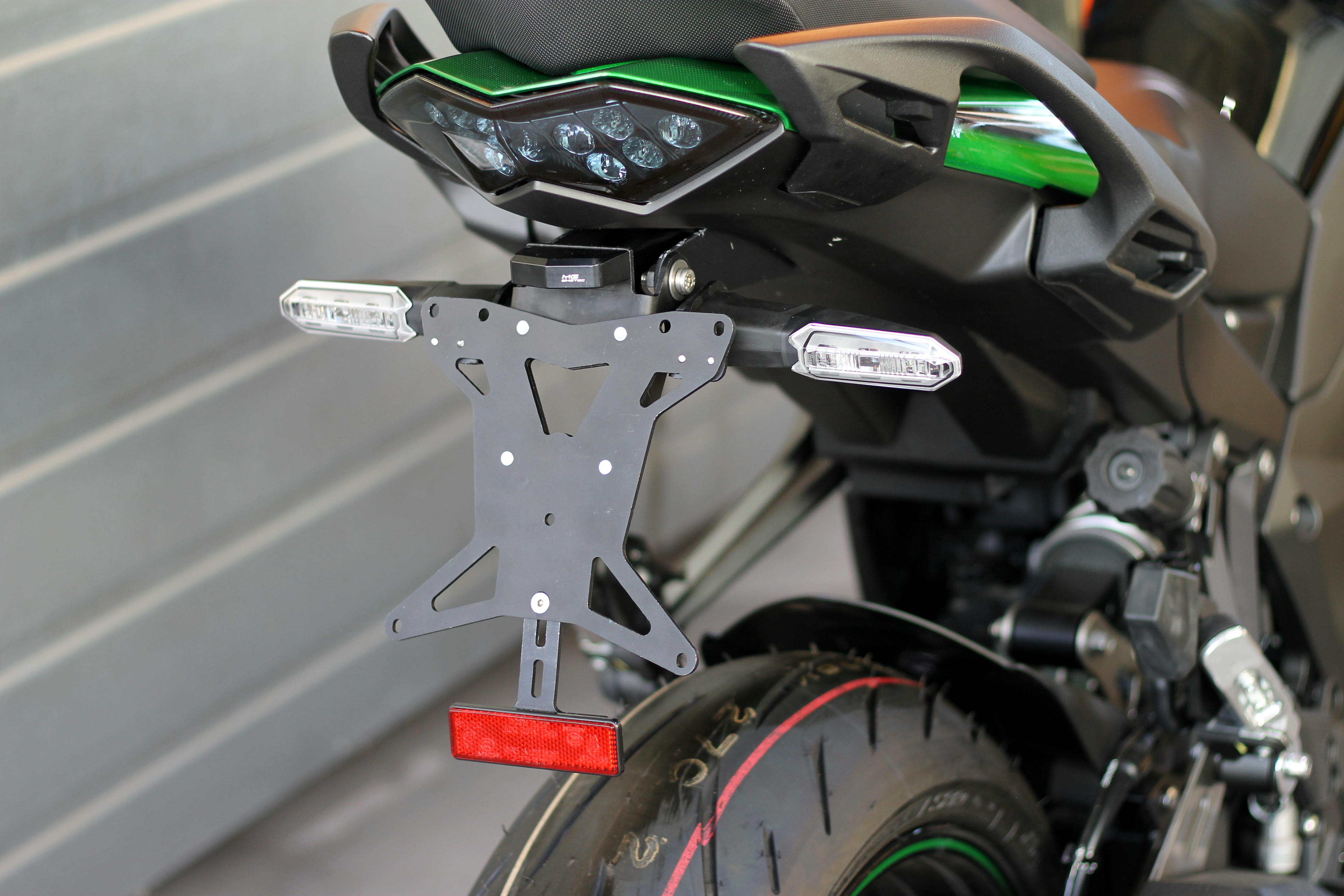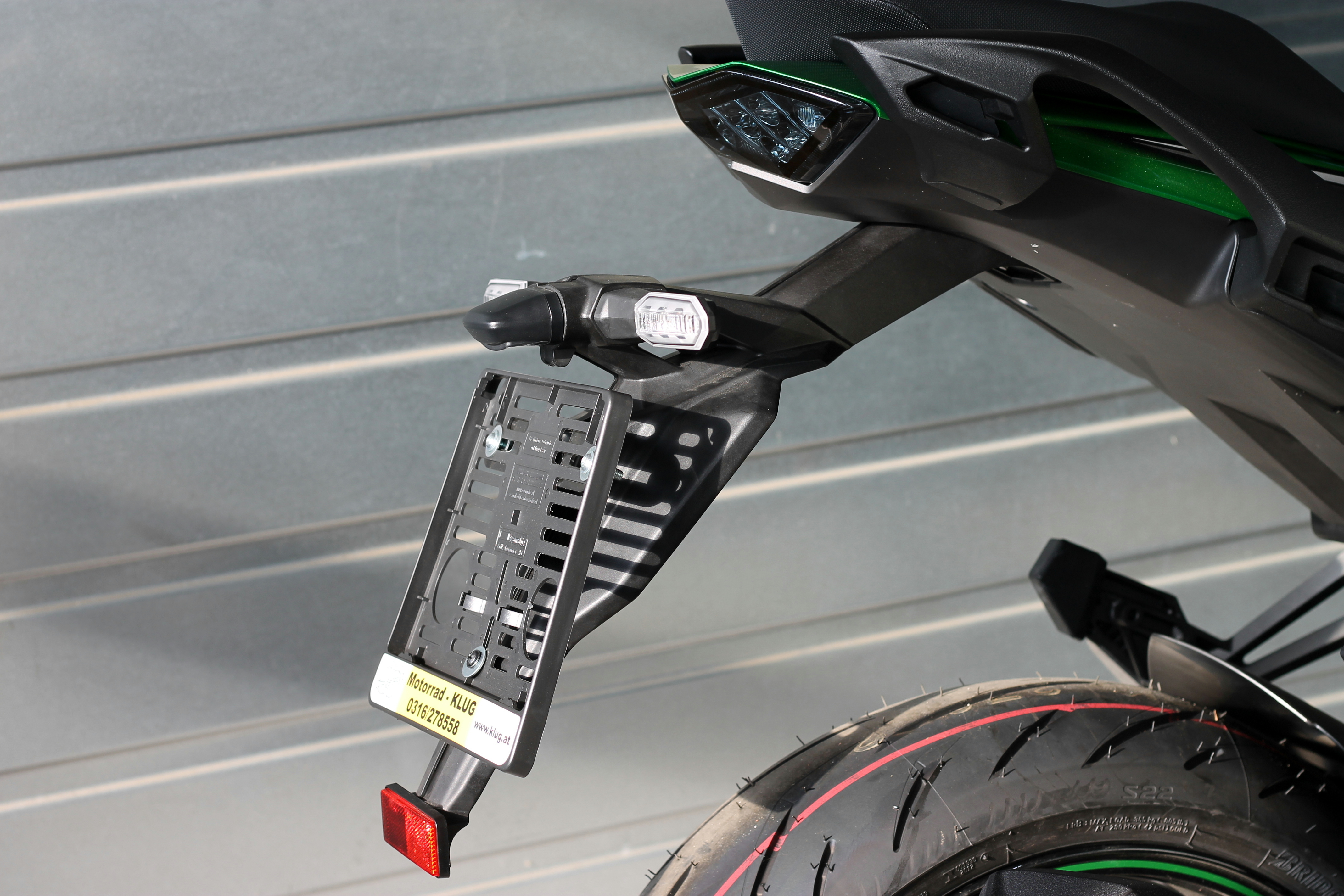Der MG Biketec Kennzeichenhalter passend für Kawasaki Ninja 1000 SX ab 2020 überzeugt durch sein präzises CNC-gefrästes Aluminiumdesign und seine hochwertige matt-schwarz eloxierte Oberfläche. Dank des voll verstellbaren Winkelmechanismus können Sie das Kennzeichen optimal anpassen – für eine perfekte Kombination aus Funktionalität und sportlicher Optik. Die integrierte LED-Kennzeichenbeleuchtung und der Reflektor verfügen über eine ECE-Zulassung, was für Rechtssicherheit und Qualität steht.