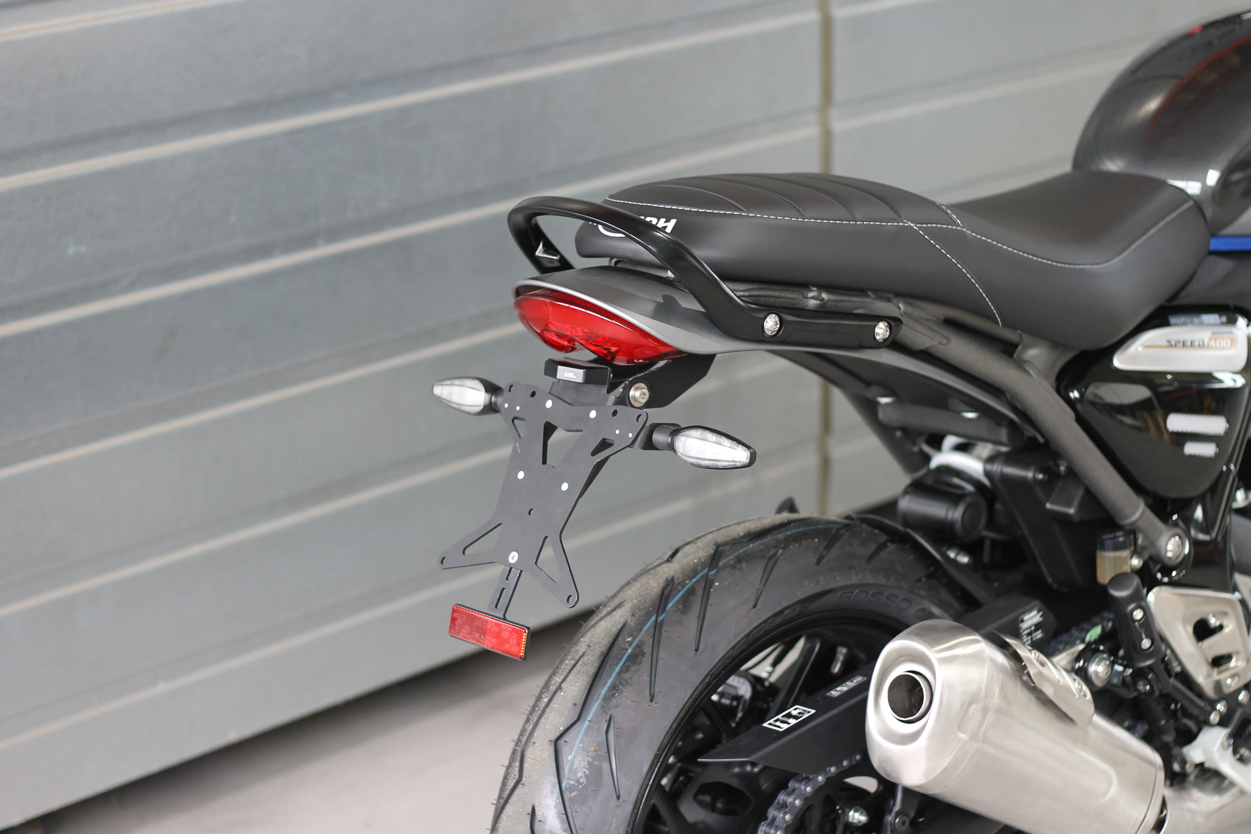 Die integrierte LED-Kennzeichenbeleuchtung und der ECE-zertifizierte Reflektor sorgen für optimale Sichtbarkeit und gesetzeskonforme Nutzung im Straßenverkehr. Zudem ist das System kompatibel mit den originalen Blinkern der Triumph Speed 400. Der Einbau gestaltet sich einfach: Es muss lediglich ein Stecker getrennt werden.