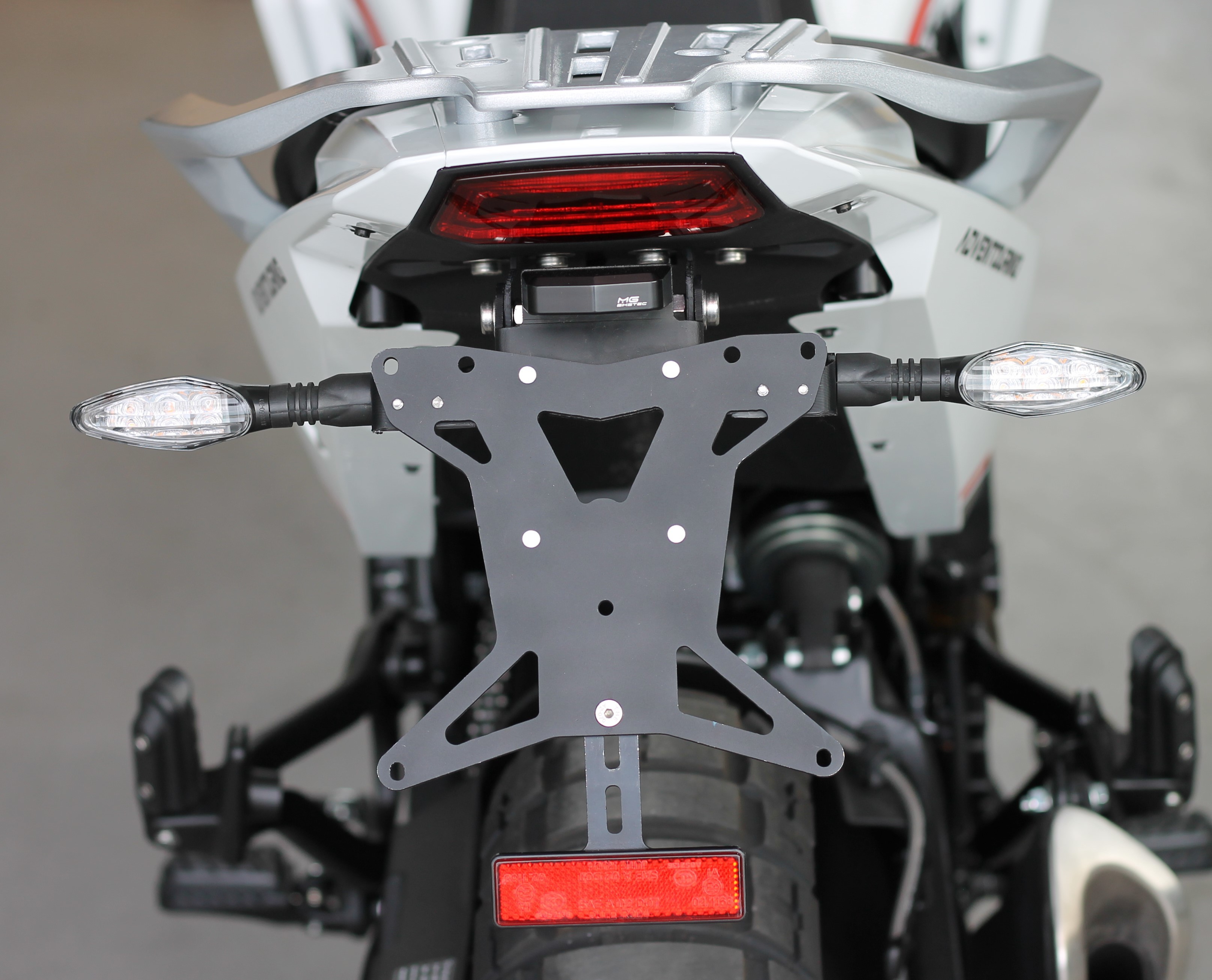 Der MG Biketec Kennzeichenhalter passend für Moto Morini 649 X-Cape ab 2021 überzeugt durch seine kompakte, formschöne und zugleich stabile Bauweise. Gefertigt aus CNC-gefrästem Aluminium, bietet er maximale Langlebigkeit und eine präzise Passform. Die matt-schwarz eloxierte Oberfläche schützt zuverlässig vor Korrosion und rundet das stilvolle Erscheinungsbild Ihres Motorrads ab.
