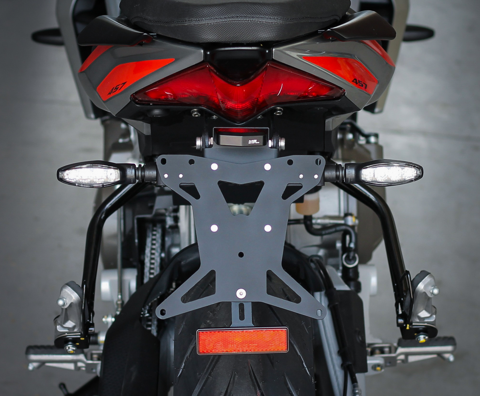 Der MG Biketec Kennzeichenhalter passend für Aprilia RS 457 ab 2024 überzeugt mit einem kompakten, sportlichen Design und hoher Funktionalität. Die CNC-gefräste Aluminiumkonstruktion sorgt für maximale Stabilität bei minimalem Gewicht. Durch den voll verstellbaren Nummerntafel-Winkel lässt sich der Look individuell anpassen und die Optik Ihres Motorrads deutlich aufwerten. Die matt-schwarz eloxierte Oberfläche verleiht dem Kennzeichenhalter ein edles Finish und schützt zuverlässig vor Witterungseinflüssen. Eine integrierte LED-Kennzeichenbeleuchtung sowie ein Reflektor – beide mit ECE-Zulassung – sorgen für hohe Sichtbarkeit und gesetzeskonforme Nutzung. Die Montage gestaltet sich einfach: Es ist lediglich die Trennung eines Steckers notwendig. Sie können zwischen verschiedenen Ausführungen wählen, um die passende Größe für Ihr Land zu erhalten – ideal für Österreich, Deutschland, Italien, Schweiz, Spanien und viele weitere Länder.