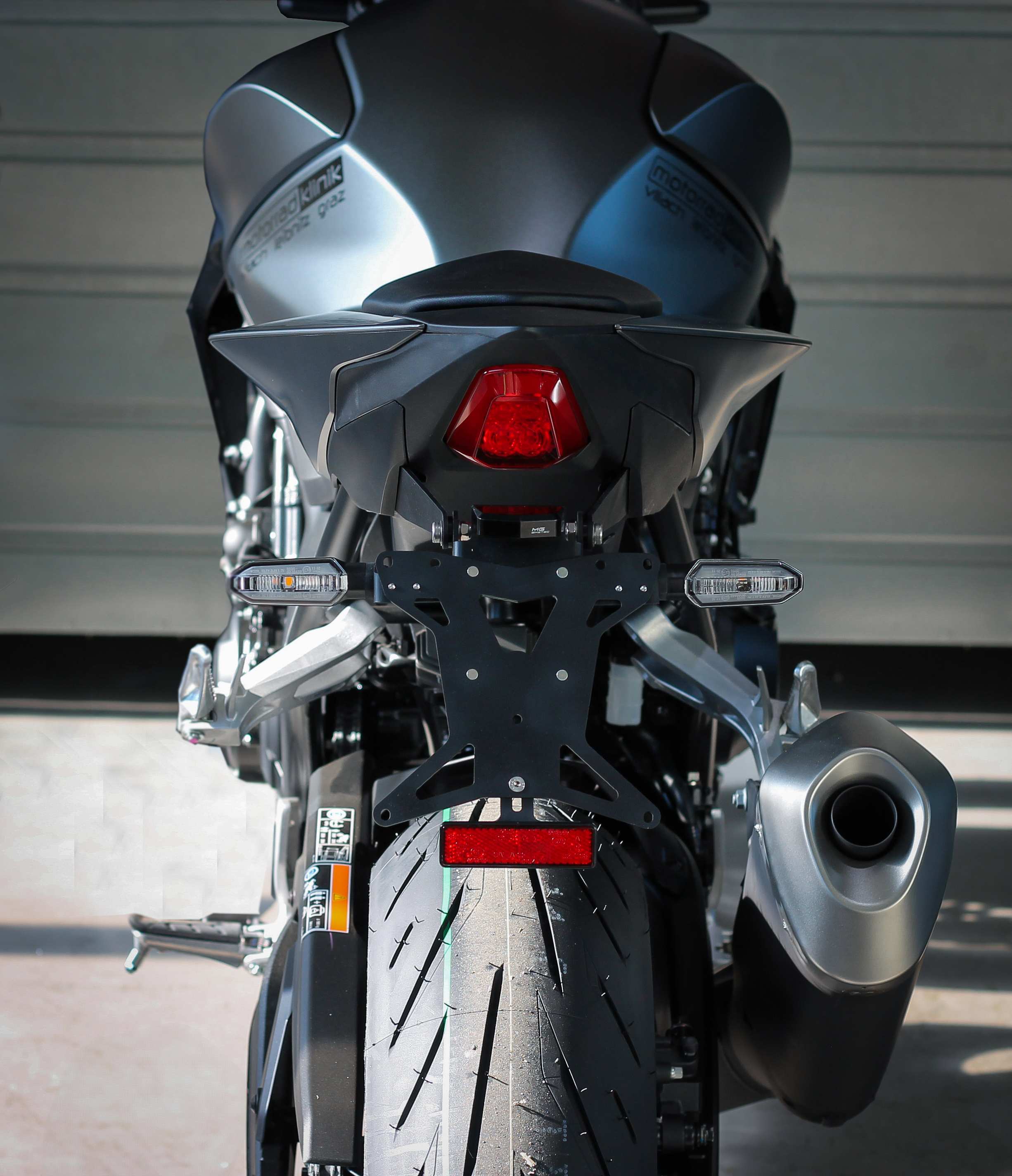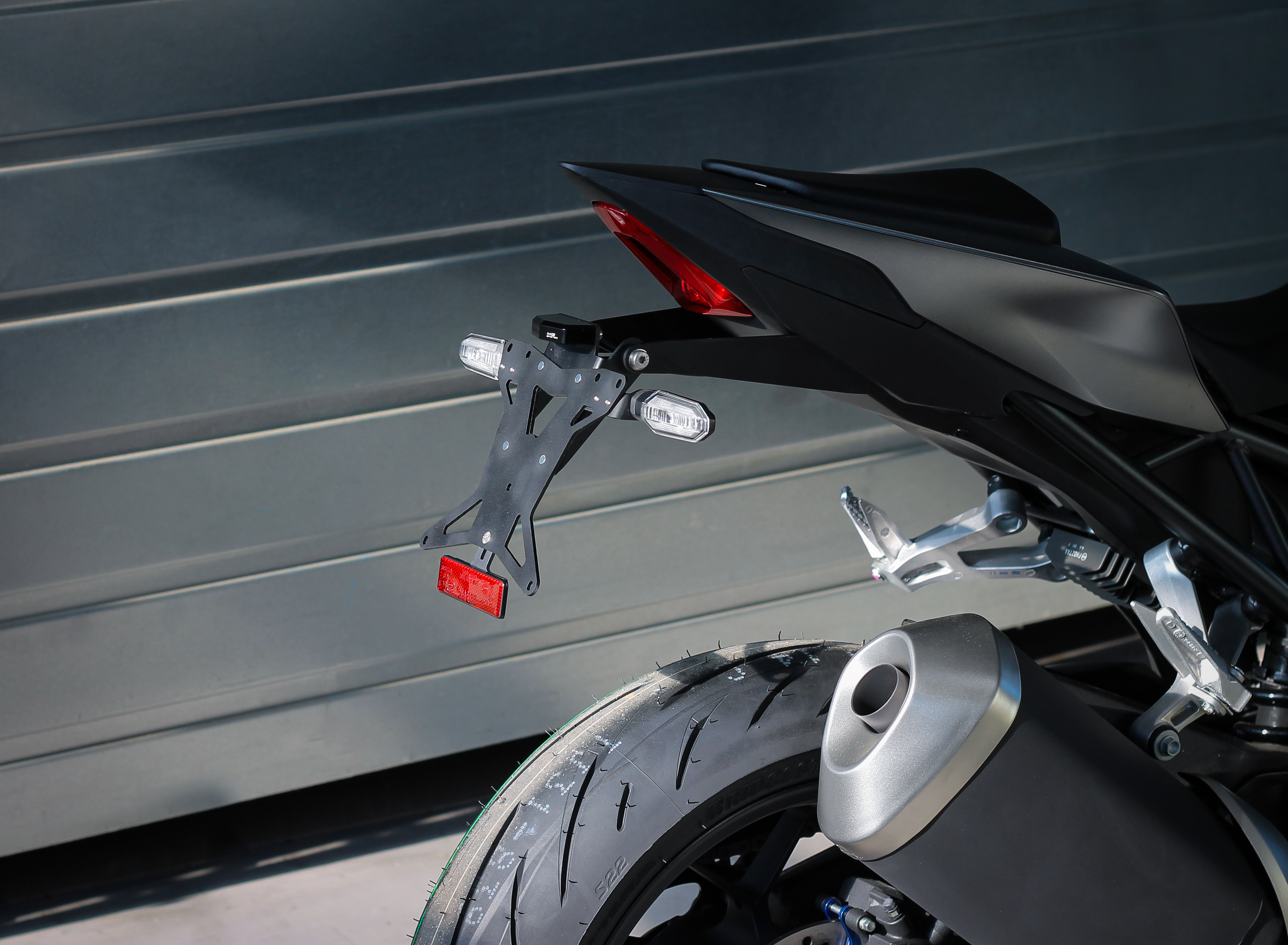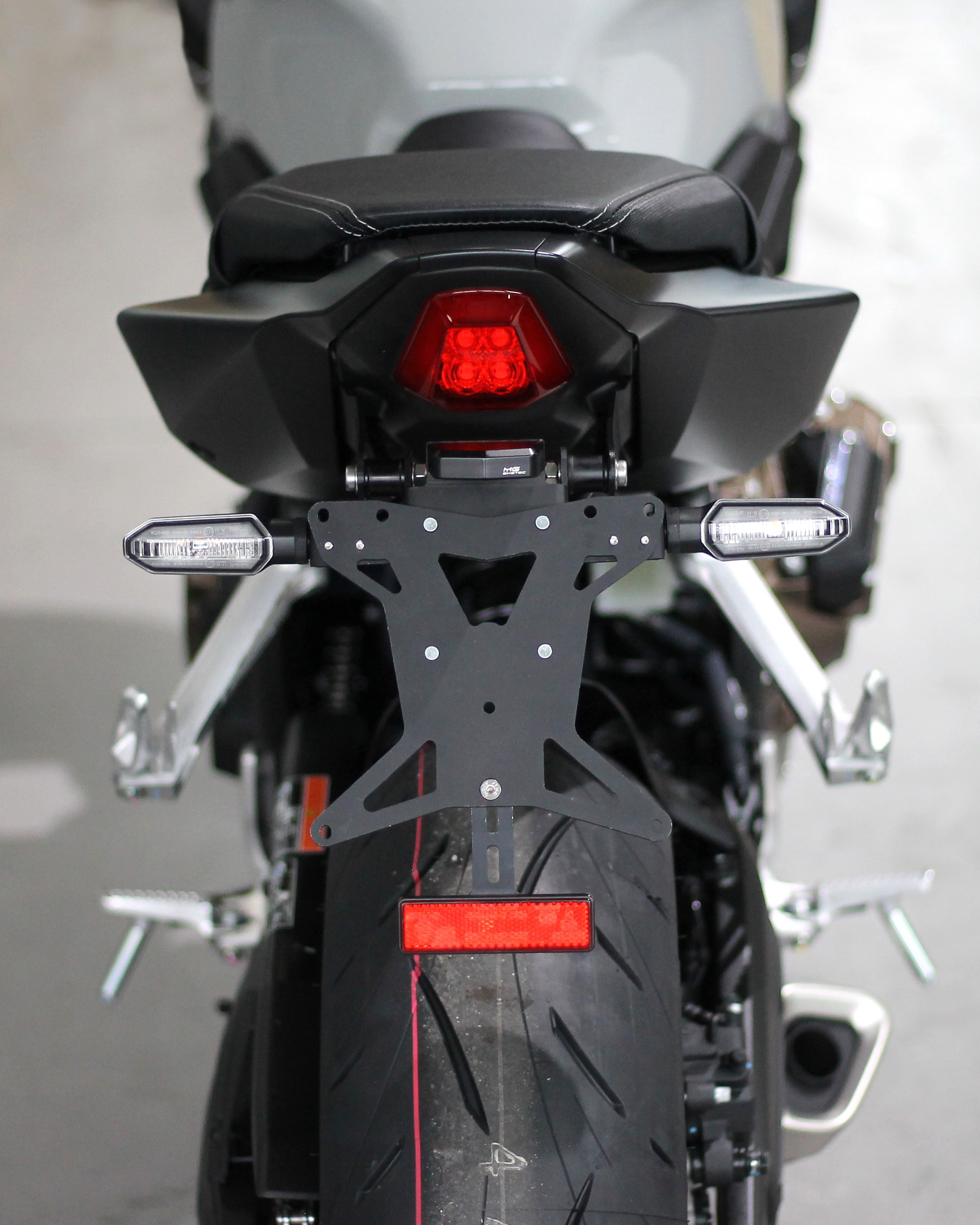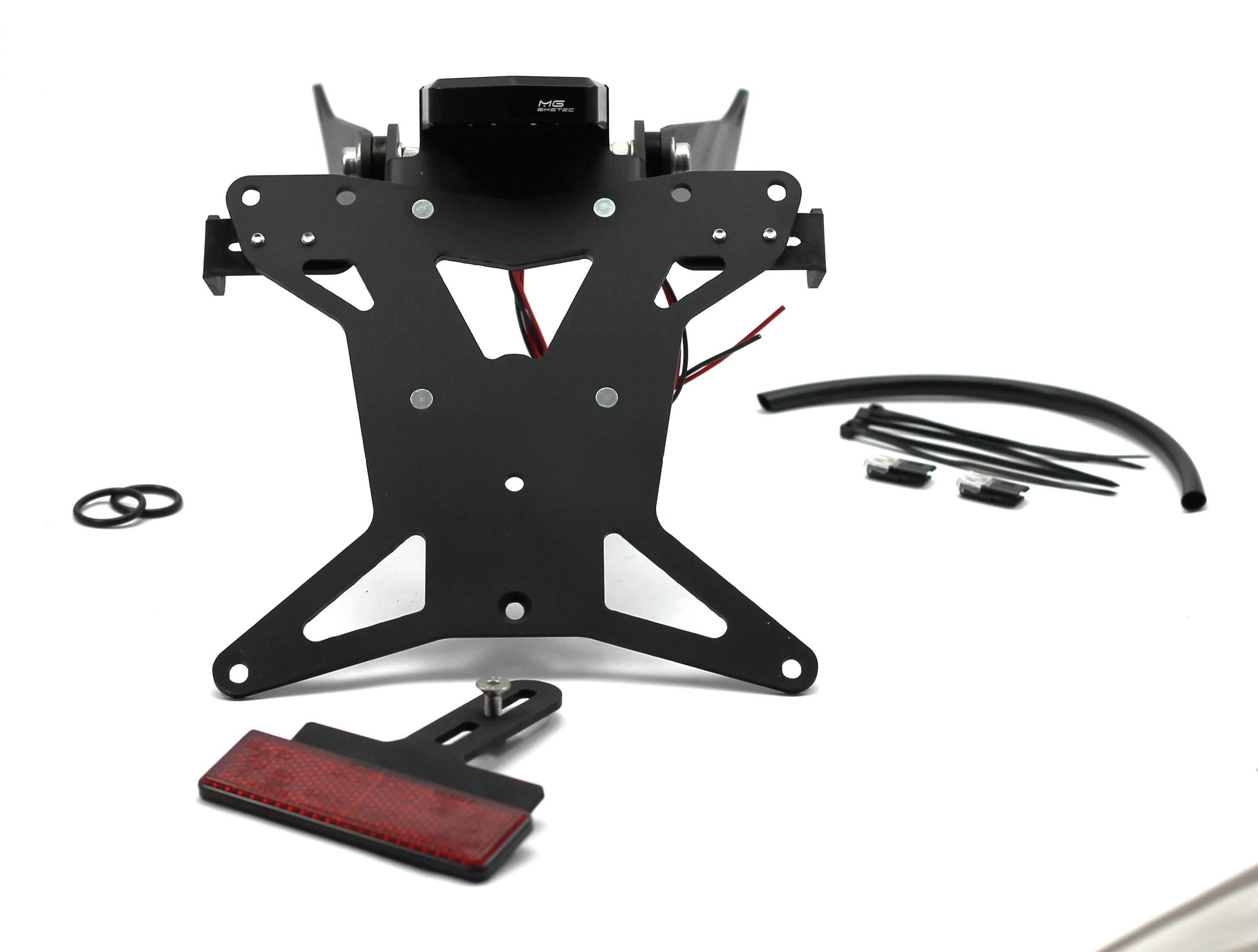 Der MG Biketec Kennzeichenhalter passend für Honda CB 650 R ab 2024 überzeugt durch ein kompaktes, modernes Design und präzise CNC-gefräste Aluminiumteile. Die matt-schwarz eloxierte Oberfläche sorgt für eine edle Optik und hohen Korrosionsschutz. Dank der verstellbaren Halterungsgeometrie lässt sich der Winkel der Nummerntafel individuell anpassen. Dieses System integriert eine LED-Kennzeichenbeleuchtung mit ECE-Kennzeichnung sowie einen Reflektor – beide gewährleisten legale Straßenzulassung in der EU. Der Halter ist vollständig kompatibel mit Originalblinkern und unterstreicht die sportliche Ästhetik Ihres Motorrads.