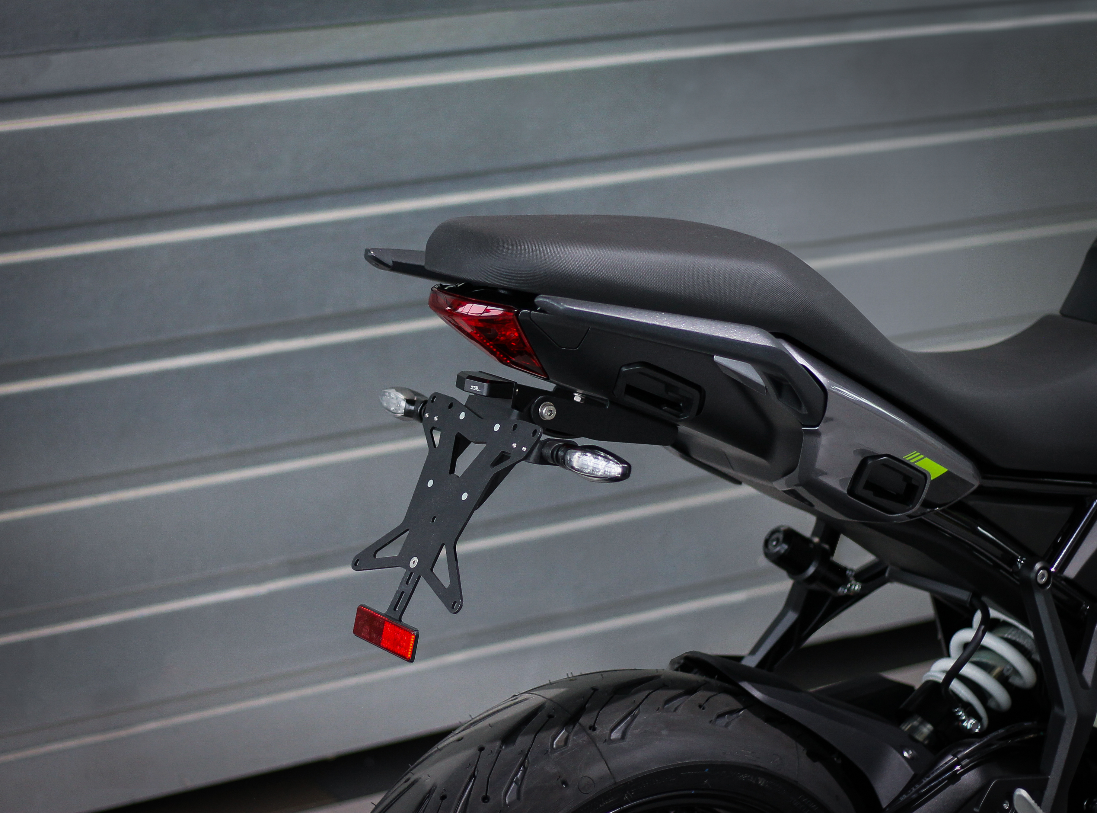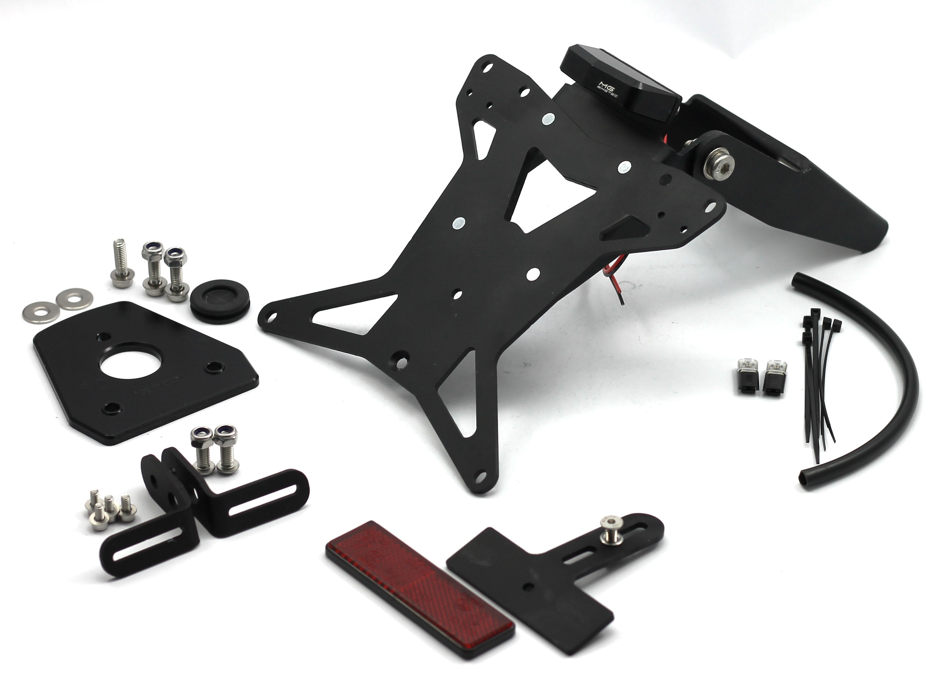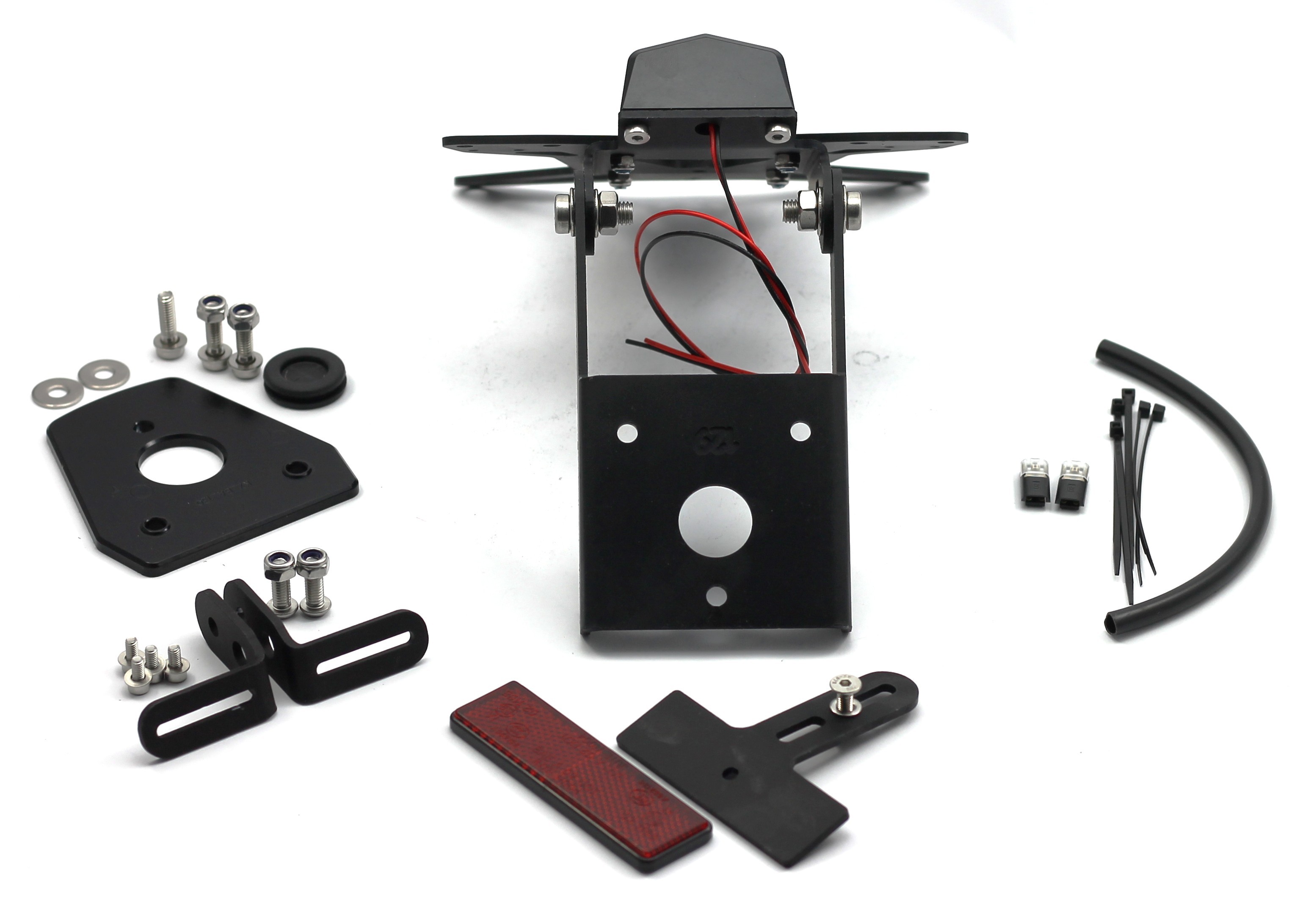 Der Winkel der Nummerntafel ist voll verstellbar, um eine individuelle Anpassung an Ihre Wünsche zu ermöglichen. Die integrierte LED-Kennzeichenbeleuchtung und der Reflektor sind mit ECE-Prüfzeichen versehen. Der Halter ist kompatibel mit originalen Blinkern und lässt sich leicht montieren, da nur ein Stecker getrennt werden muss.