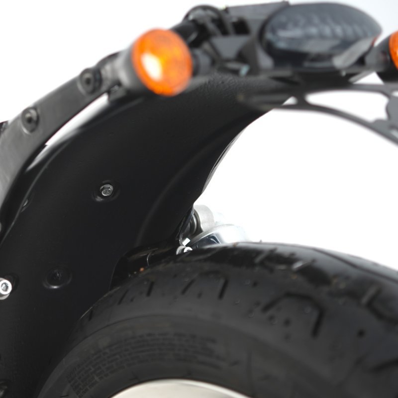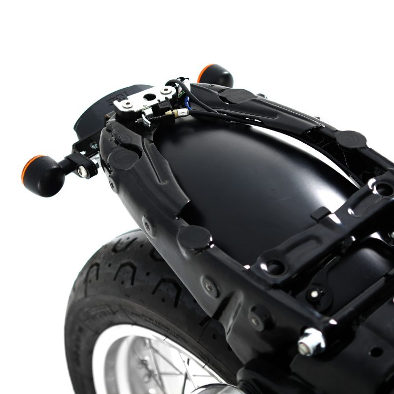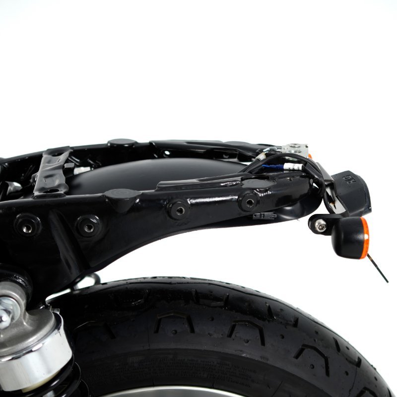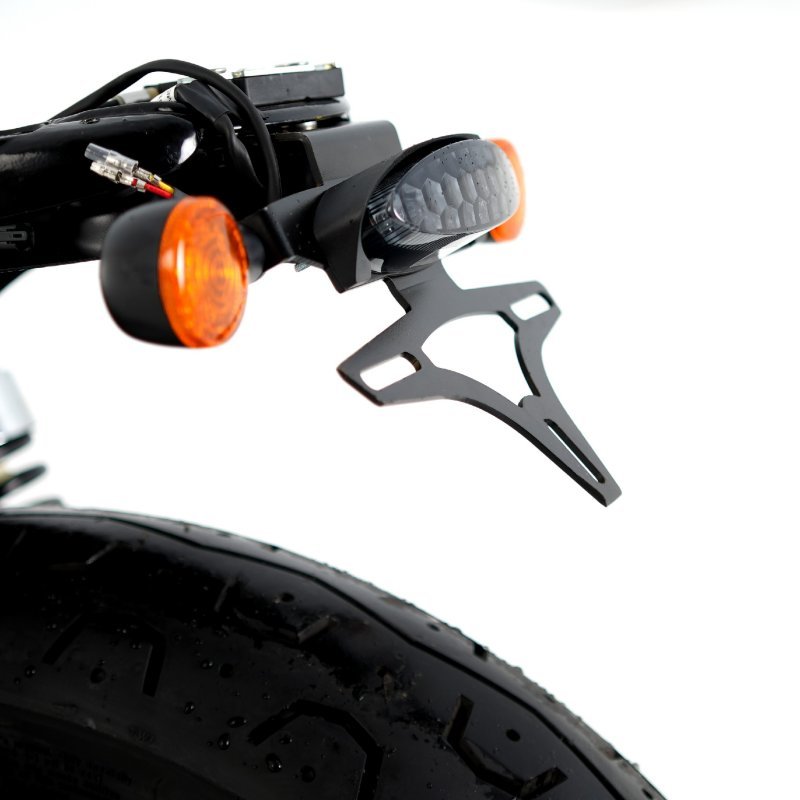 Der R&G Premium Kennzeichenhalter passend für die BSA Gold Star ab 2023 überzeugt durch seine hochwertige Verarbeitung, Haltbarkeit und optische Aufwertung des Hecks. Gefertigt aus 3 mm starkem, schwarz pulverbeschichtetem Edelstahl bietet dieses System eine stabile und zugleich elegante Lösung, um das Heck Ihres Motorrads professionell zu gestalten. Dank der mitgelieferten LED-Beleuchtung mit E-Zeichen, die Rück-, Brems- und Kennzeichenlicht integriert, wird sowohl Funktionalität als auch Zulässigkeit gewährleistet. Sie können den Halter mit Originalblinkern oder den separat erhältlichen R&G Microblinkern verwenden. Durch die einfache Plug-and-Play-Montage ist keine Anpassung an der Verkleidung erforderlich.