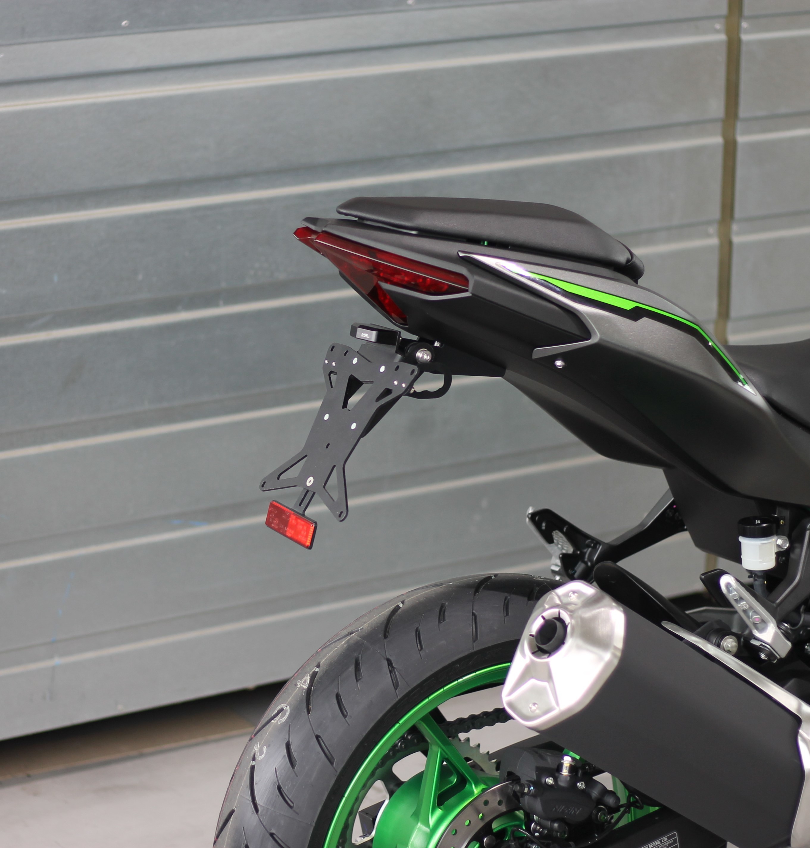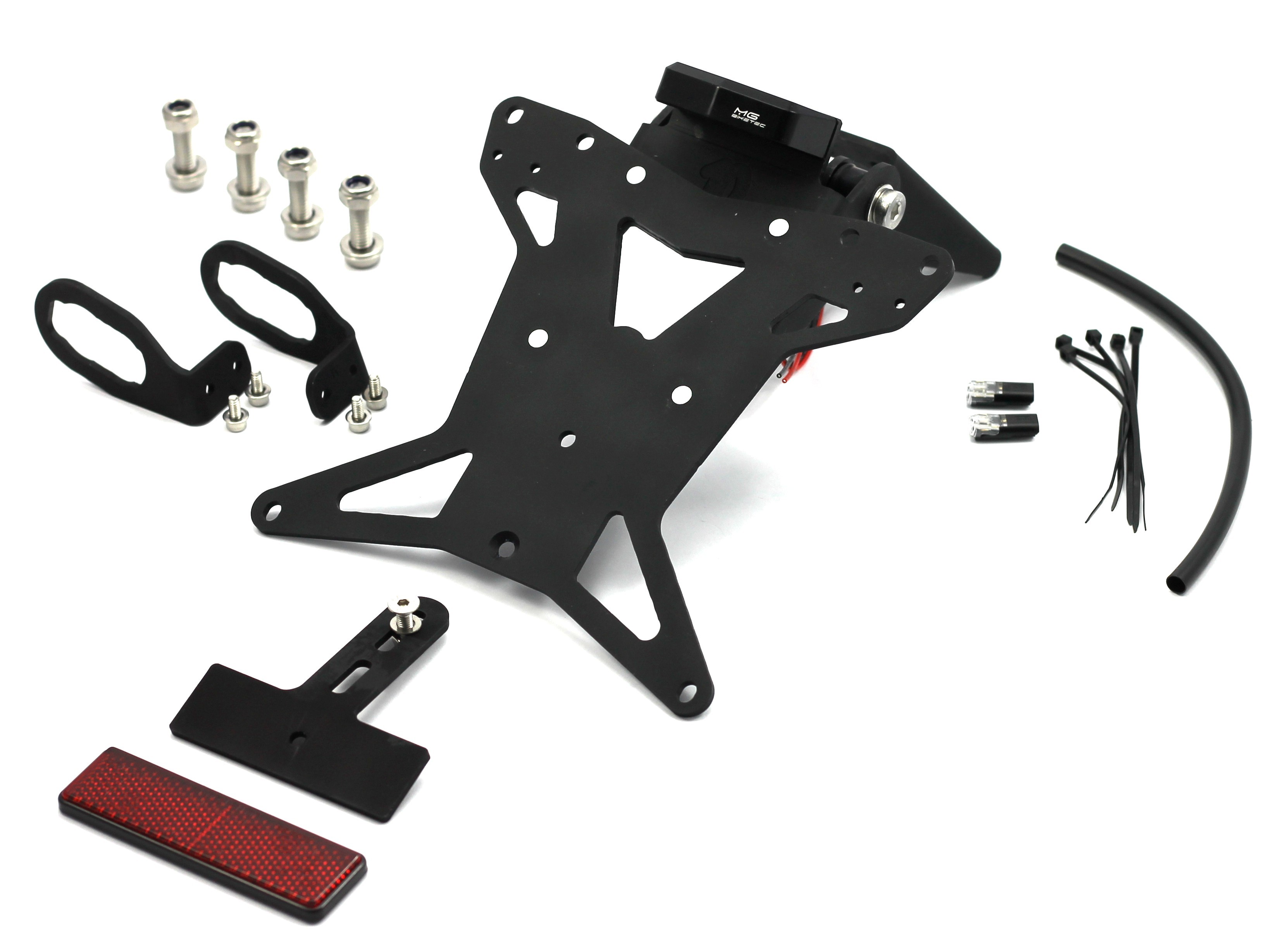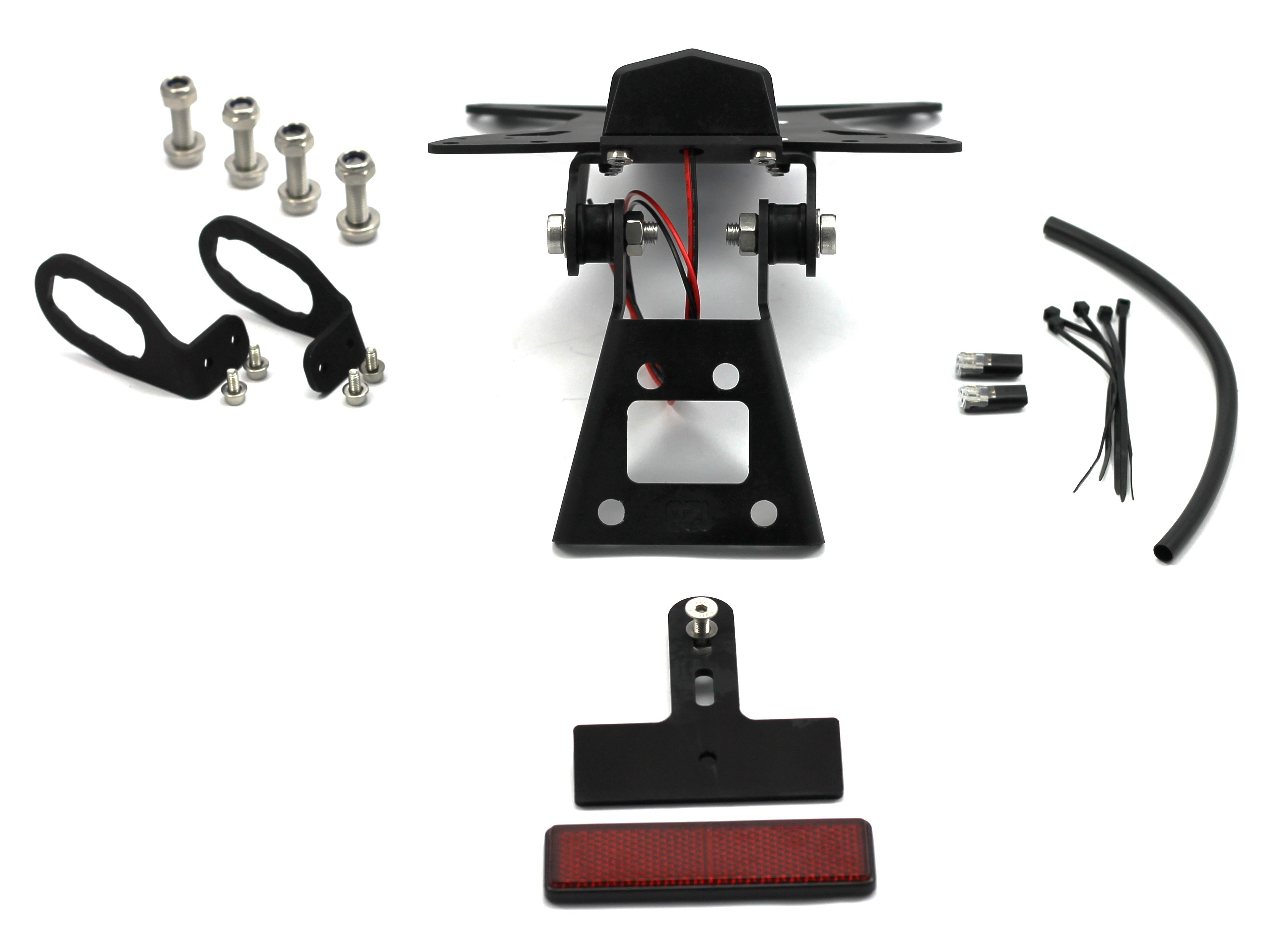 Der MG Biketec Kennzeichenhalter passend für Kawasaki Z 500 ab 2024 überzeugt durch sein kompaktes, sportliches Design und höchste Verarbeitungsqualität. Gefertigt aus CNC-gefrästem Aluminium mit robust eloxierter Oberfläche in matt-schwarz, bietet er eine langlebige und optisch ansprechende Lösung zur Aufwertung Ihres Motorrads. Durch den voll verstellbaren Kennzeichenwinkel lässt sich der Halter individuell anpassen, während die Aufnahme für Originalblinker den Verbleib der werksseitigen Blinker ermöglicht.