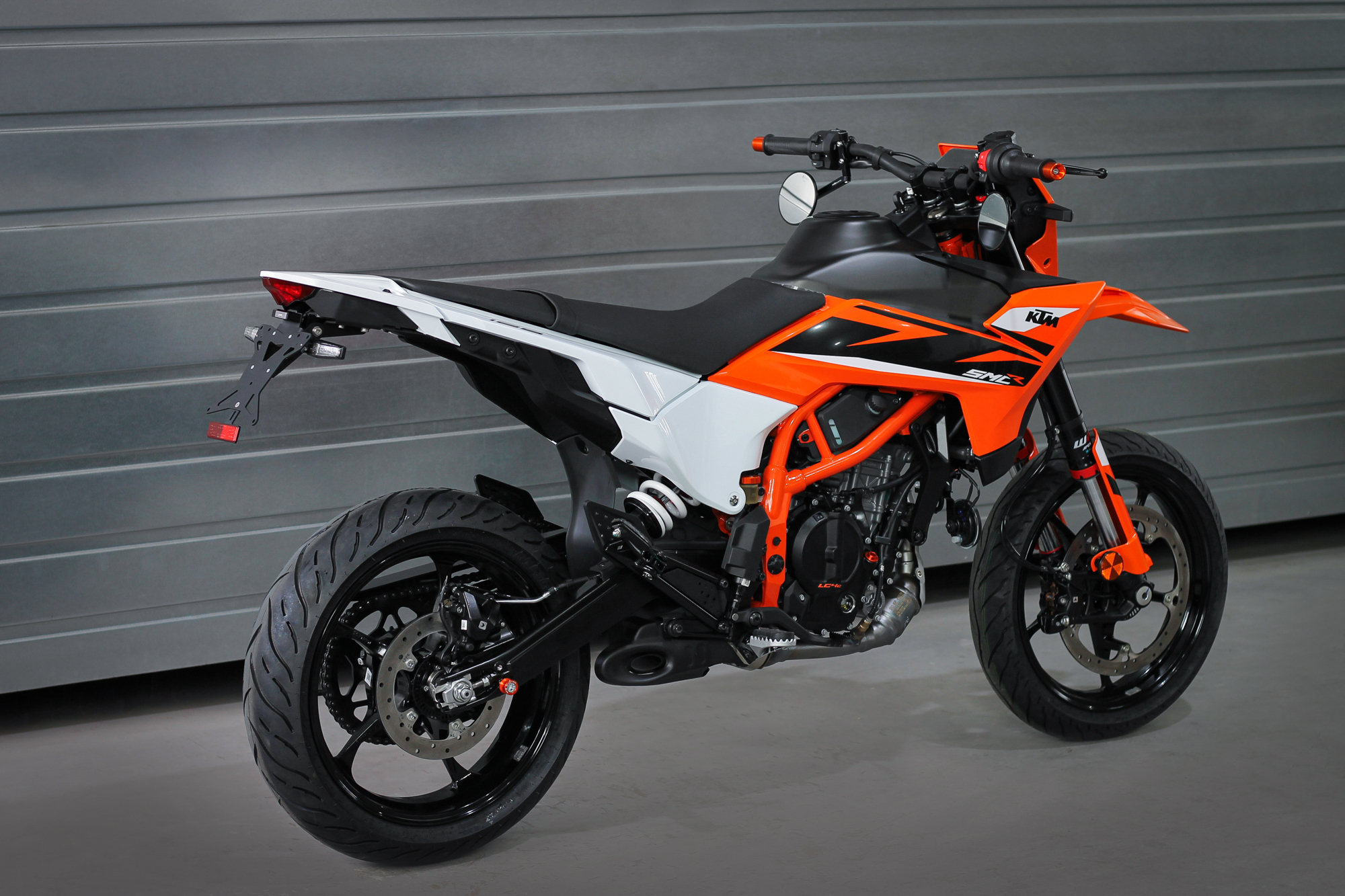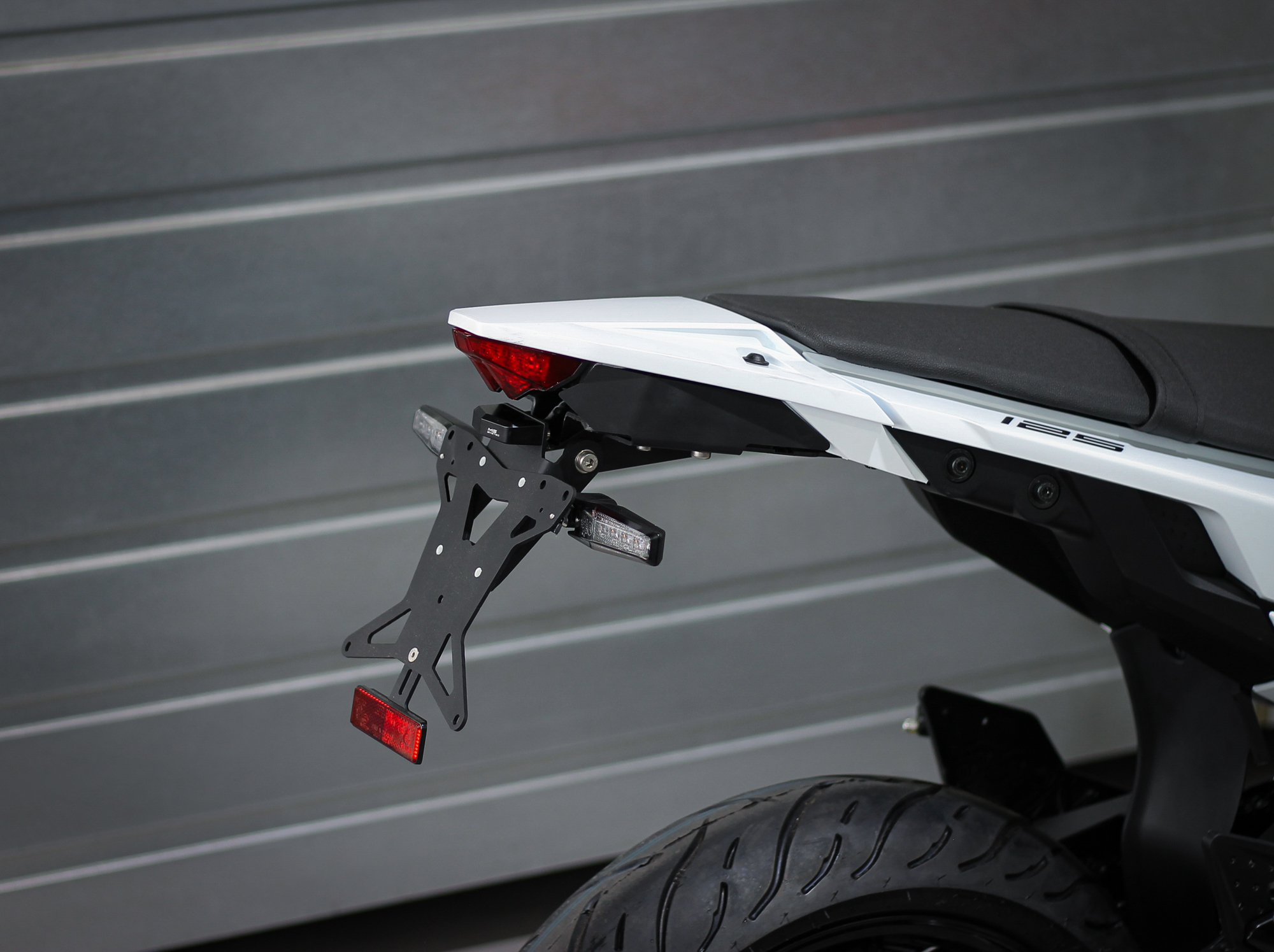 Der hochwertige MG Biketec Kennzeichenhalter überzeugt durch ein kompaktes, sportliches Design und wurde speziell passend für KTM 125 SMC R ab 2025 entwickelt. Dank der präzisen CNC-gefrästen Aluminiumkonstruktion bietet er maximale Stabilität bei minimalem Gewicht und sorgt für eine klare, ansprechende Optik am Heck Ihres Motorrads. Der verstellbare Neigungswinkel der Nummerntafel und die integrierte Befestigungsmöglichkeit für Originalblinker sorgen für maximale Flexibilität im Einsatz. Die Oberfläche ist matt-schwarz eloxiert, wodurch der Halter optimal gegen Witterungseinflüsse geschützt ist und dauerhaft sein edles Finish behält. Die integrierte LED-Kennzeichenbeleuchtung und der Reflektor verfügen über eine ECE-Kennzeichnung und erfüllen somit alle gesetzlichen Anforderungen. Drei verschiedene Halterplattengrößen decken die wichtigsten internationalen Zulassungsnormen ab und bieten Ihnen maximale Kompatibilität:
