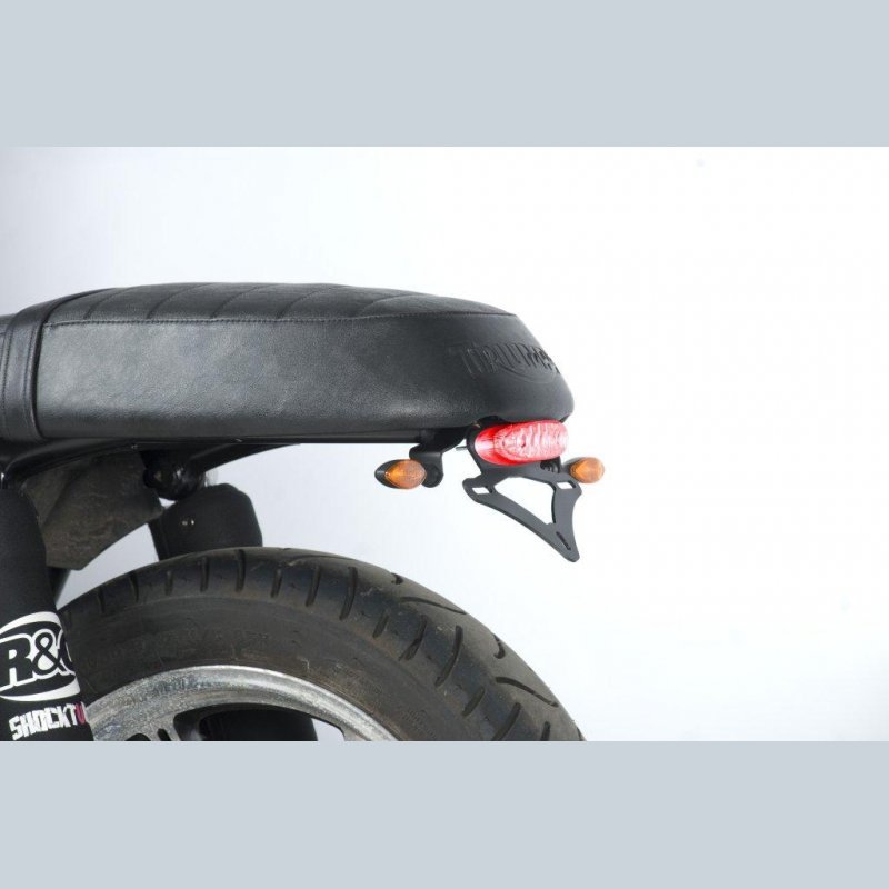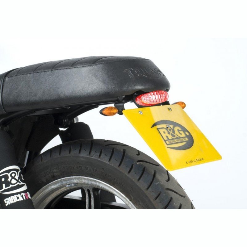 Der R&G Premium Kennzeichenhalter passend für Triumph Scrambler 865 2006-2016 überzeugt mit einer hochwertigen Verarbeitung und einem klaren Design. Gefertigt aus robustem, 3 mm starkem Aluminium und mit einer schwarz pulverbeschichteten Oberfläche versehen, sorgt dieser Heckumbau für eine langlebige und elegante Optik. Der Kennzeichenhalter wird inklusive LED Rücklicht geliefert, das über ein E-Zeichen verfügt und die Funktionen Rücklicht, Bremslicht und Kennzeichenbeleuchtung integriert. Eine Plug-and-Play Montage ermöglicht den einfachen Anbau ohne Anpassung der Verkleidung. Durch die Verwendung von Microblinkern wird das Heck der Maschine besonders sportlich und aufgeräumt.