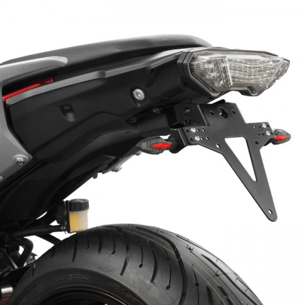 Dieser hochwertige Kennzeichenhalter wurde speziell passend für YAMAHA MT-07 Tracer (Baujahr 2016–2018) entwickelt. Das Modell überzeugt durch eine robuste Konstruktion, eine lange Lebensdauer sowie hervorragende Witterungsbeständigkeit. Die schwarz pulverbeschichtete Oberfläche sorgt für eine sportliche, edle Optik und bietet zugleich optimalen Korrosionsschutz. Dank der stufenlosen Verstellbarkeit des Neigungswinkels und der individuell einstellbaren Blinkerhalter in drei Positionen lässt sich der Kennzeichenhalter perfekt an Ihre Anforderungen anpassen. Eine aufwendige Veränderung der Verkleidungsteile ist nicht notwendig. Die Auslegung für alle Kennzeichentypen mit einer Breite von 175 mm garantiert eine vielseitige Anwendung. Zudem ist keine Eintragung beim TÜV erforderlich – der Kennzeichenhalter ist ABE-frei.