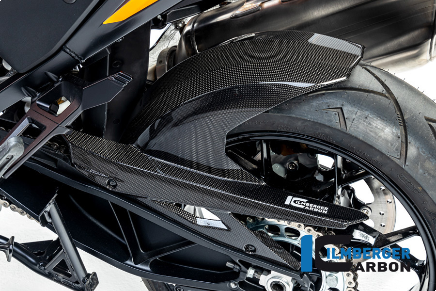Der Ilmberger Carbon Kotflügel hinten mit Kettenschutz ist speziell passend für KTM 1290 Super Adventure entwickelt und überzeugt durch seine Kombination aus Leichtbau, präziser Passform und exklusiver Optik. Das Bauteil wird an den originalen Befestigungspunkten montiert und bietet optimalen Spritzschutz für Fahrer und Motorrad. Der integrierte, verlängerte Kettenschutz verhindert Schmutz- und Fettspritzer, die durch eine gut geschmierte Kette entstehen können.